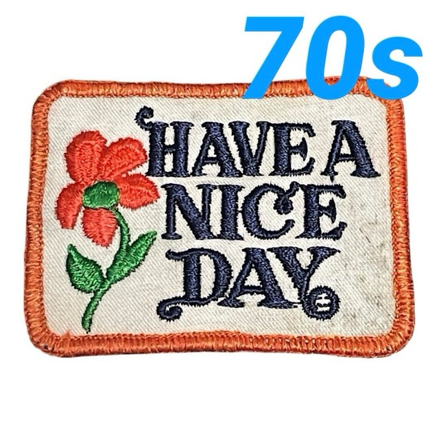 70s HAVE A NICE DAY ワッペン13 ビンテージ ヒッピー ピーターマックス フラワームーブメント 当時物デッドストック Vintage Patch DEAD STOCK 1枚あたりの価格になります。 一枚のみの激レア入荷。 もうアメリカでも売りにでません。 SIZE:縦約6.4cm×横約8.8cm(5mm程度の誤差は生じます) CONDITION:当時の新品未使用品(DEAD STOCK)汚れあり。個体差ございます。