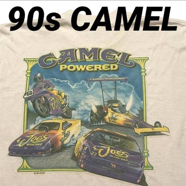 90s CAMEL タバコ ビンテージ Tシャツ ポケT キャメル レーシング 両面プリント 1994 CAMEL POWERED Joe's Racing(白,XLサイズ程度)袖裾シングルステッチ いいツラのCAMEL Racing。 まだまだ暑い日が続く猛暑の中、汗染みが目立たない白ボディーのビッグサイズ。オススメです! SIZE:XLサイズ程度(肩幅約55cm,身幅約61.5cm,着丈約69cm,袖丈約21.5cm) COLOR:白 CONDITION:USED。ヘビーコットン。タグ欠損 以外、特に目立つ汚れのない美品レベル。 USEDに理解のある方、お越しください。