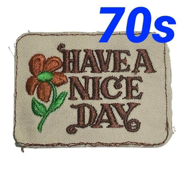 70s HAVE A NICE DAY ワッペン⑨ ビンテージ ヒッピー ピーターマックス フラワームーブメント 当時物デッドストック Vintage Patch DEAD STOCK 1枚あたりの価格になります。 一枚のみの激レア入荷。 もうアメリカでも売りにでません。 SIZE:縦約6.4cm×横約8.8cm(5mm程度の誤差は生じます) CONDITION:当時の新品未使用品(DEAD STOCK)汚れあり。個体差ございます。