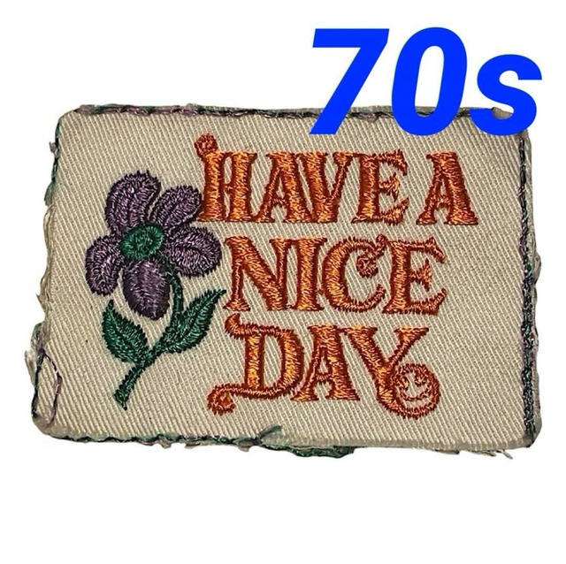 70s HAVE A NICE DAY ワッペン① ビンテージ ヒッピー ピーターマックス フラワームーブメント 当時物デッドストック Vintage Patch DEAD STOCK 縫いかけのレアディテール! 1枚あたりの価格になります。 SIZE:縦約6.4cm×横約8.6cm(5mm程度の誤差は生じます) CONDITION:当時の新品未使用品(DEAD STOCK)個体差ございます。