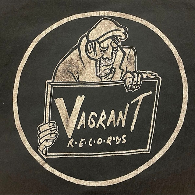 激レア 90s VAGRANT RECORDS 音楽レーベル FRUIT OF THE LOOM フルーツオブザルーム ビンテージ Tシャツ プロモT ヘビーコットン アドバタイジング ロックT バンドT(黒,Mサイズ)袖裾ダブルステッチ