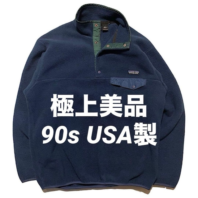 激レア 極上美品 90s パタゴニア ビンテージ スナップT シンチラ プルオーバー USA製 旧タグ 1996年製(ブルー系,Mサイズ) フリースもまだ肉厚でフカフカさを感じられる貴重なコンディション。 この年代特有の色気のある深いブルーカラー。 USA製となるとコンディションがいいのが見つからず、ガクンっと数が少なくなります。 SIZE:Mサイズ(肩幅約52cm,身幅約60cm,着丈約66cm,袖丈約57cm) COLOR:ブルー系 CONDITION:USED。使用に伴い軽くパイピングのスレはあるももの、目立つ汚れのないコンディション。 スナップボタンも全てスムーズに閉められます。