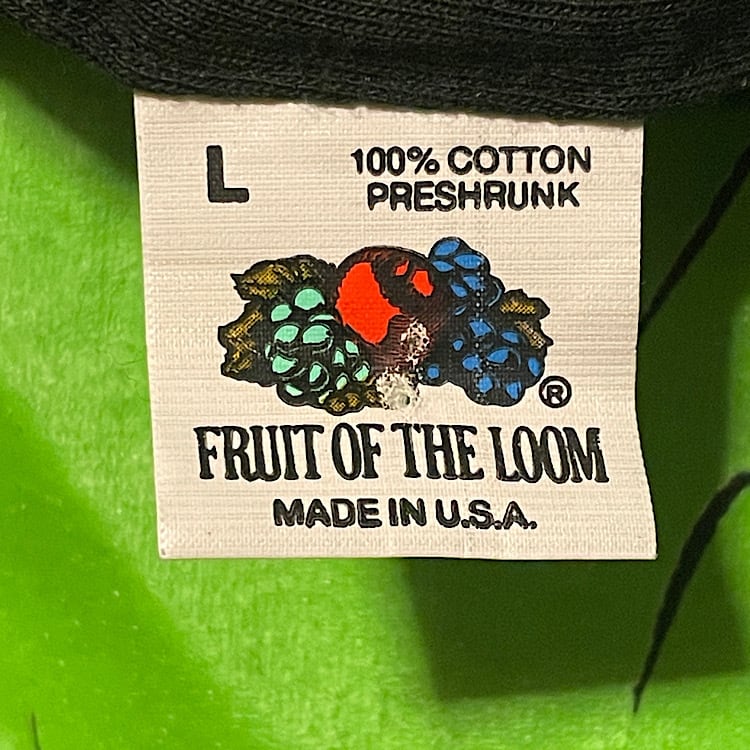 ボディはUSA製のフルーツオブザルームで、1989年製造を示すコピーライトが記載されています。