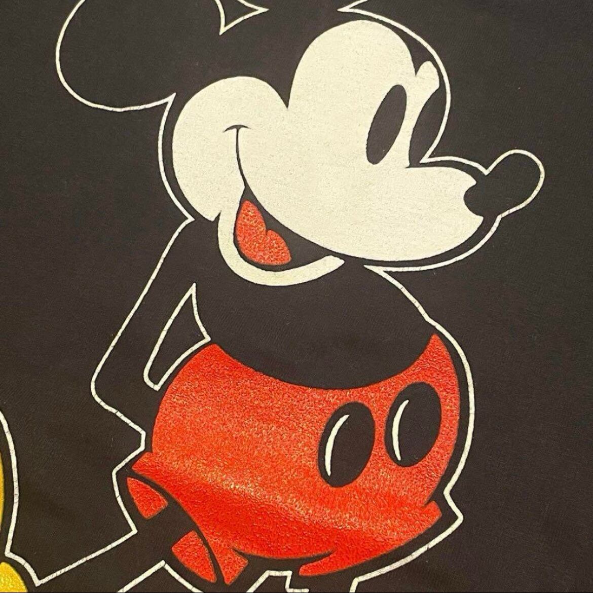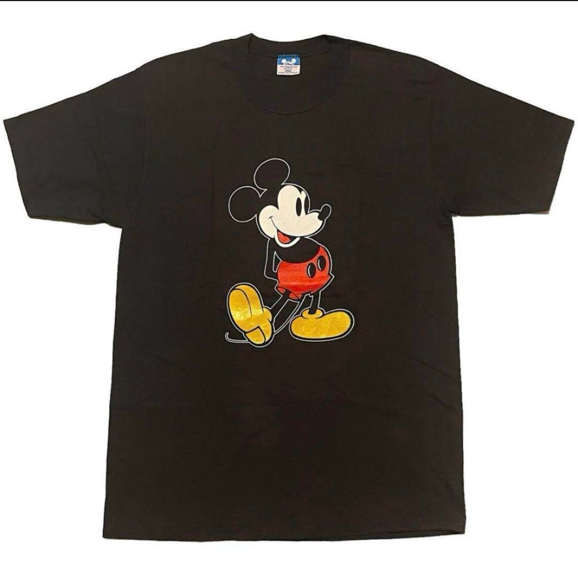 80s ミッキーマウス ディズニーオフィシャル ヴィンテージ Tシャツ ビッグサイズ デッドストック DISNEY Mickey DEAD STOCK(黒,Lサイズ)袖シングル裾ダブルステッチ
