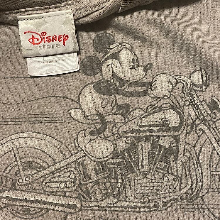激レア DISNEY store ハーレーダビッドソン バイク ミッキーマウス ビンテージ Tシャツ リンガーT BIKE Mickey(チャコールグレー,XXL 3L 2XLサイズ)