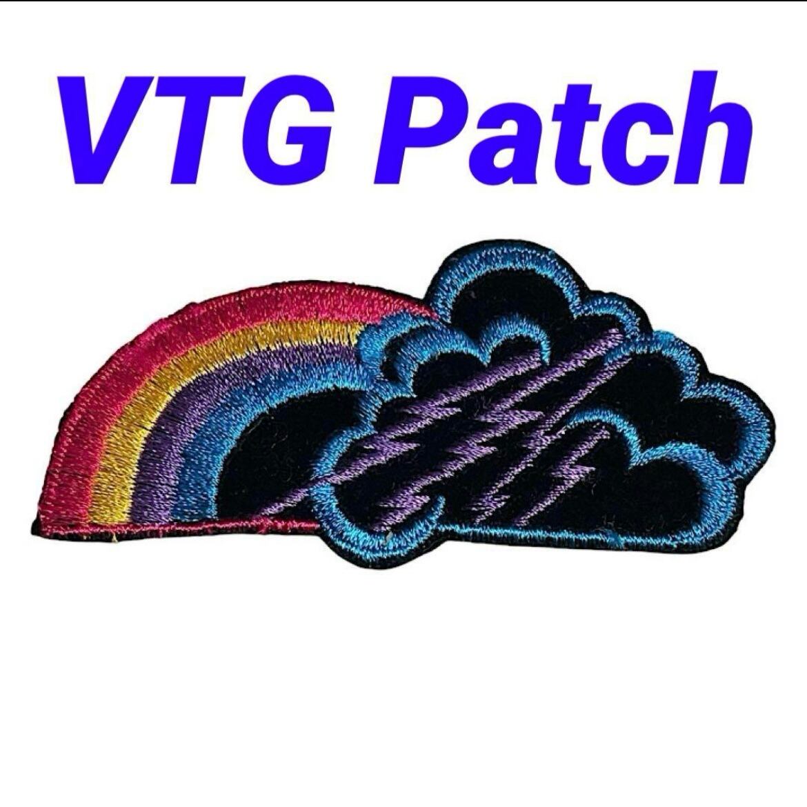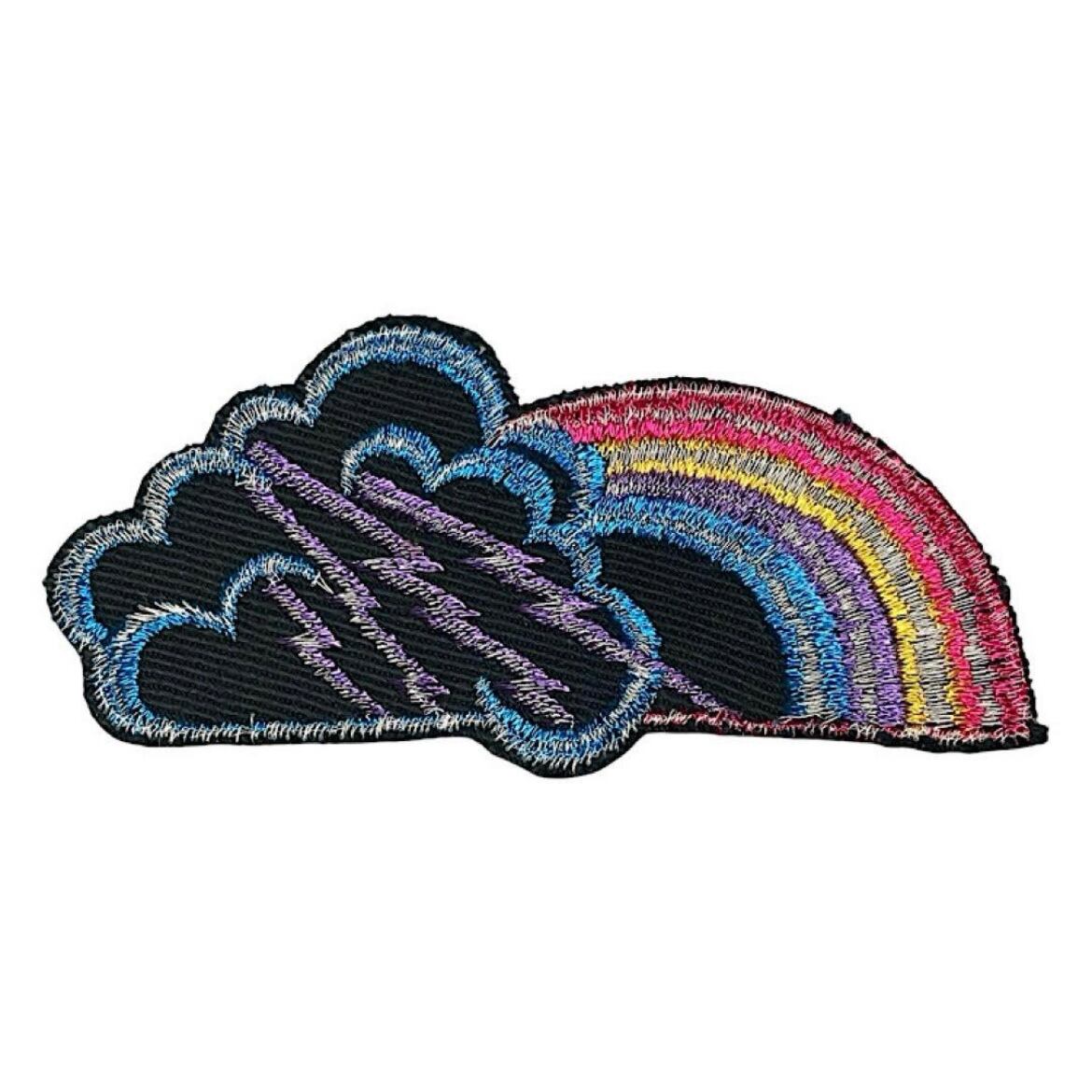 虹と雷雲のデザインが特徴的な刺繍パッチ。