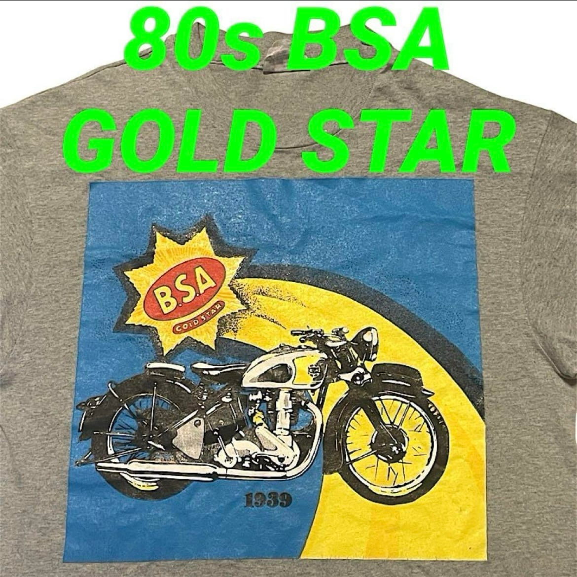 80s Hanes BSA GOLD STAR 1939 ビンテージ Tシャツ 英車 ロッカーズ トライアンフ イギリス車 ゴールドスター USA製 戦前車(グレー,Lサイズ)袖裾シングルステッチ