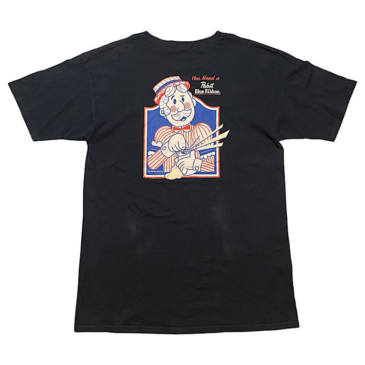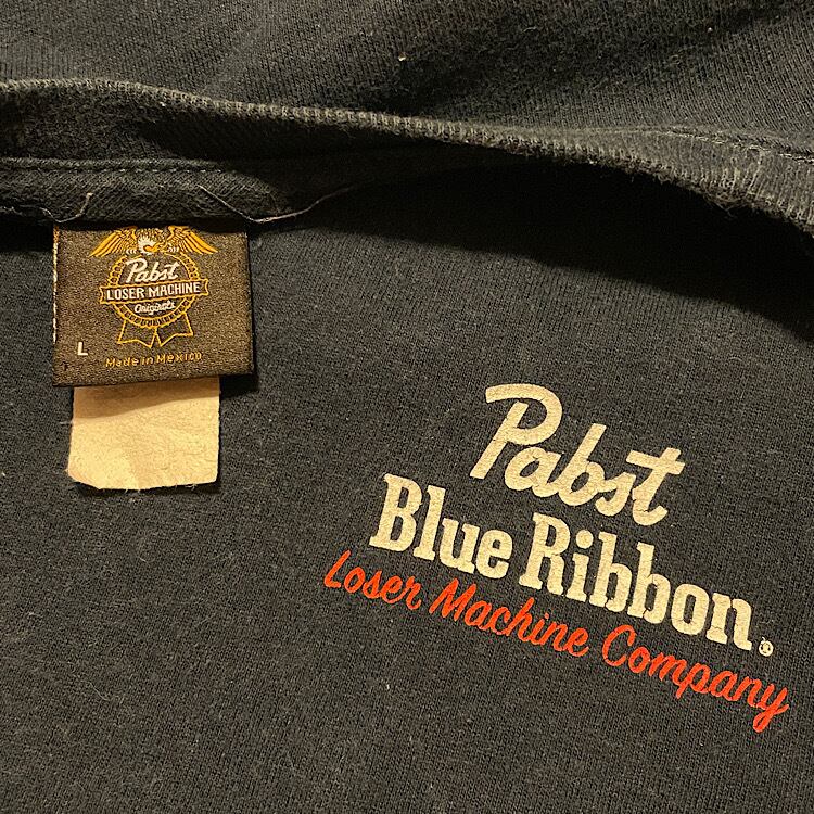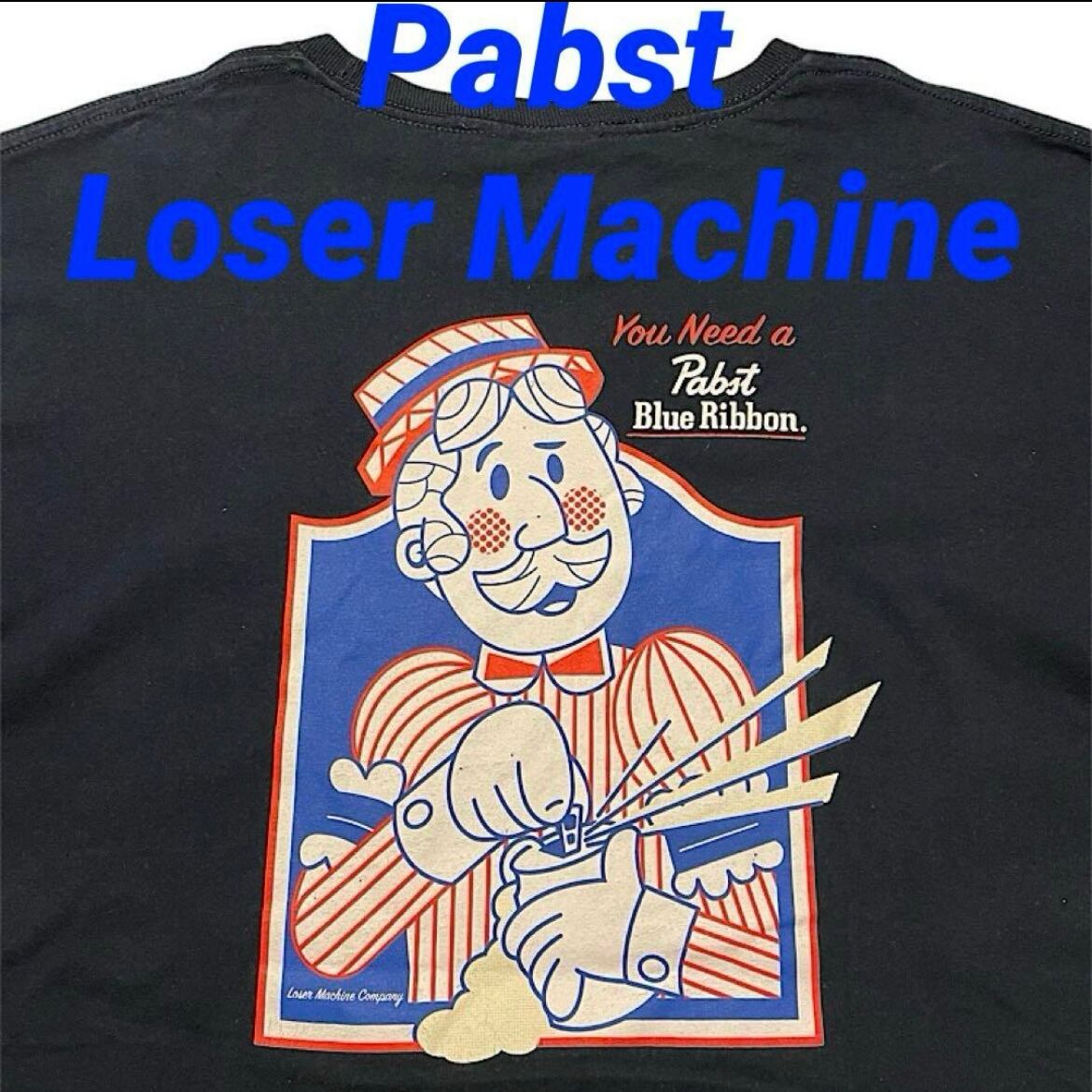 ルーザーマシーン x パブストブルーリボン コラボ Tシャツ Loser Machine x Pabst Blue Ribbon(黒,Lサイズ)