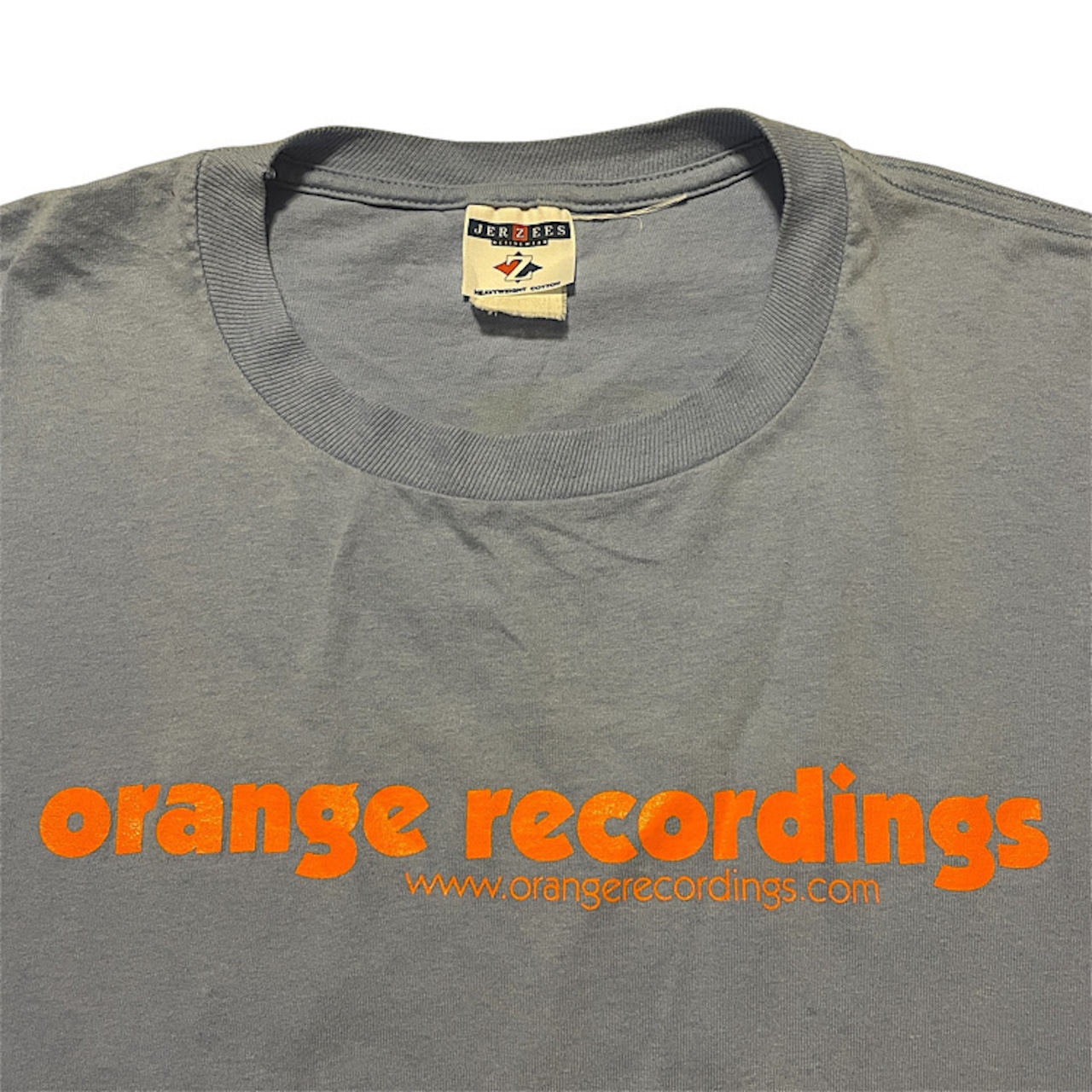 激レア 90s JERZEES Orange Recordings 音楽レーベル ビンテージ Tシャツ プロモT ヘビーコットン アドバタイジング ロックT バンドT(水色,2XLサイズ程度)袖裾ダブルステッチ