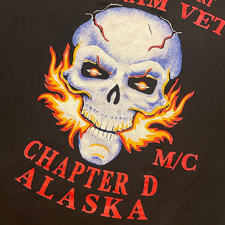 00s〜 PORT and COMPANY VETNAM VETS MC ビンテージ モーターサイクルクラブ Tシャツ サポートT 両面プリント ベトナム戦争退役軍人(黒,XLサイズ)袖裾ダブルステッチ