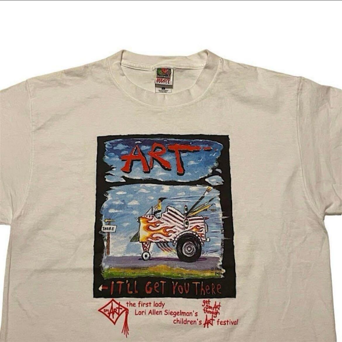 激レア柄 90s ビンテージ フルーツオブザルーム ホットロッドプリント Tシャツ アートT Fred Babb アニメT FRUIT OF THE LOOM(白,Lサイズ)袖裾ダブルステッチ