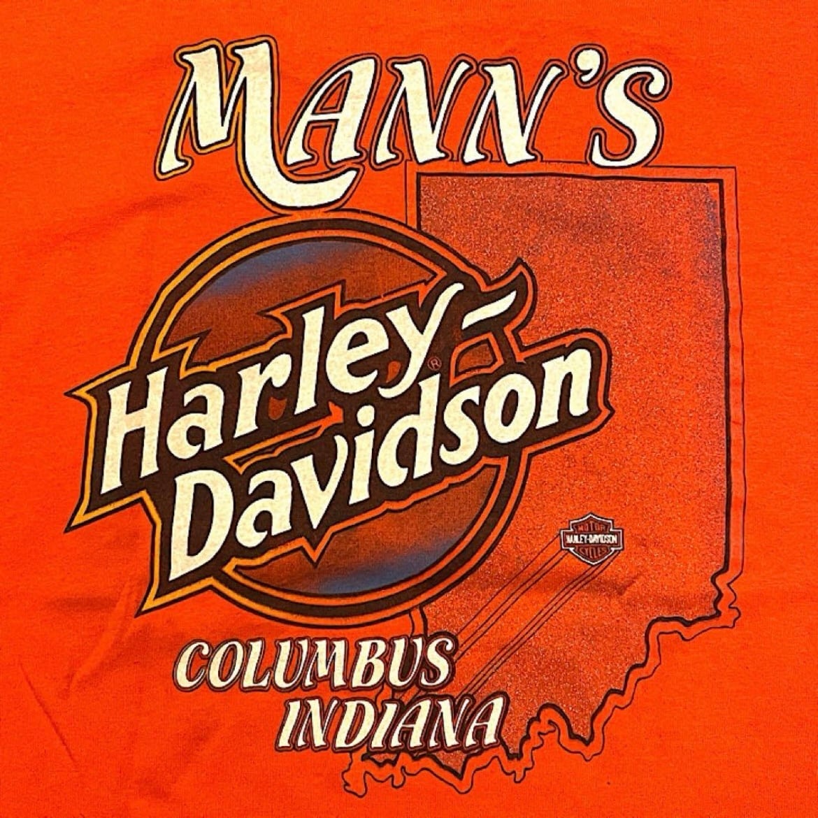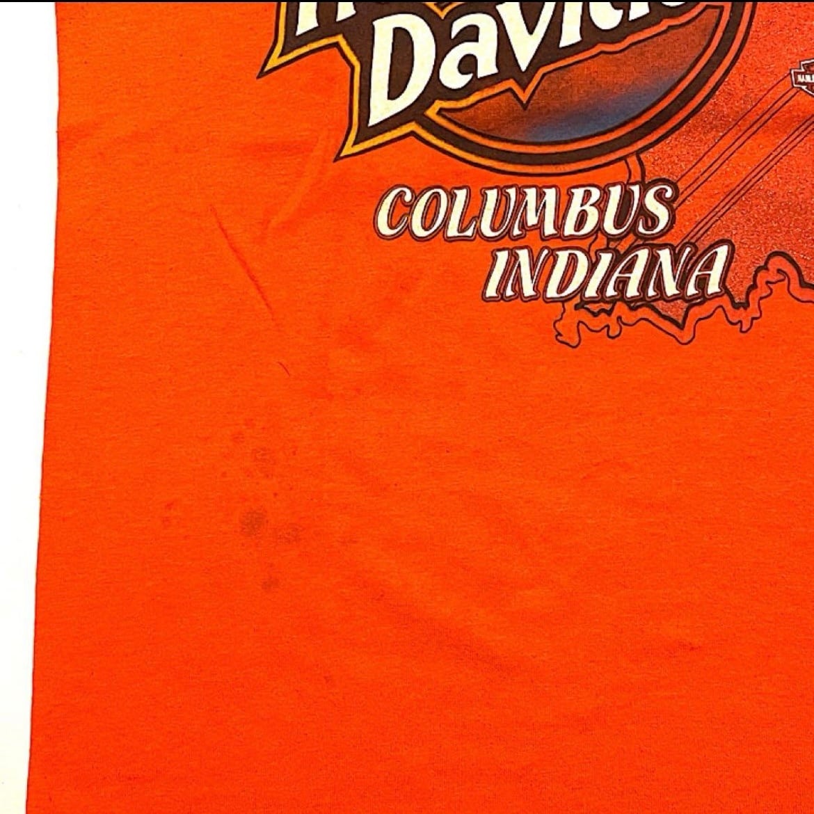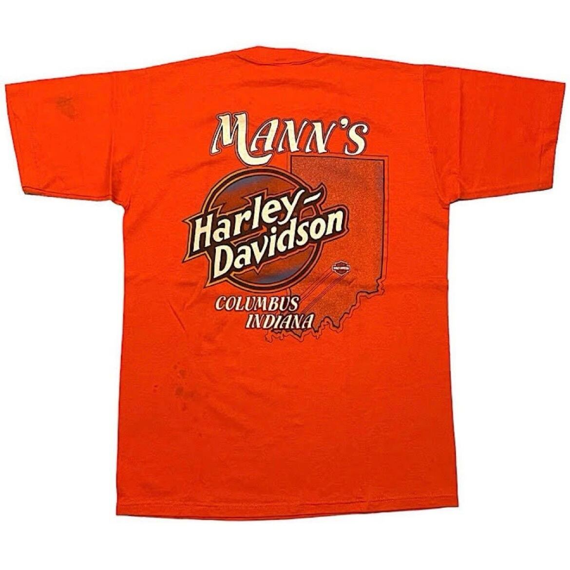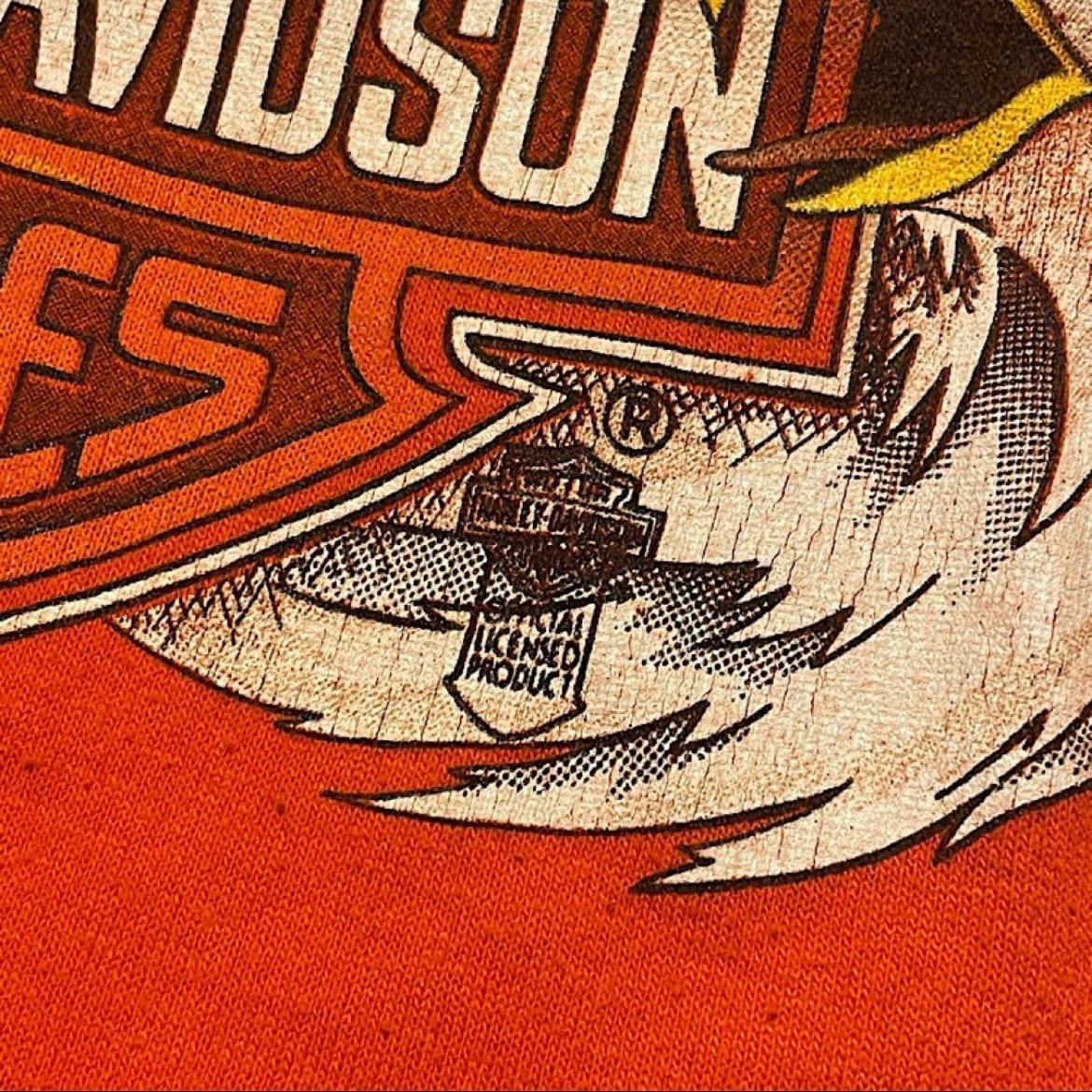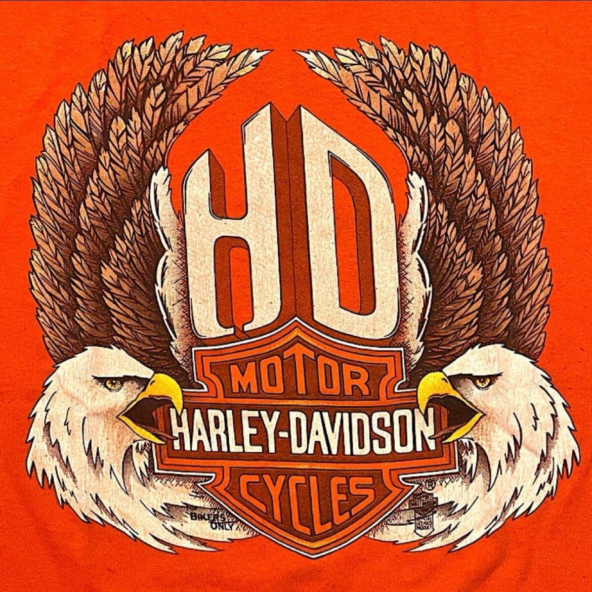 80s ビンテージ ハーレーダビッドソン Tシャツ 両面プリント イーグル×ウイング(オレンジ,Mサイズ程度)袖シングル裾ダブルステッチ