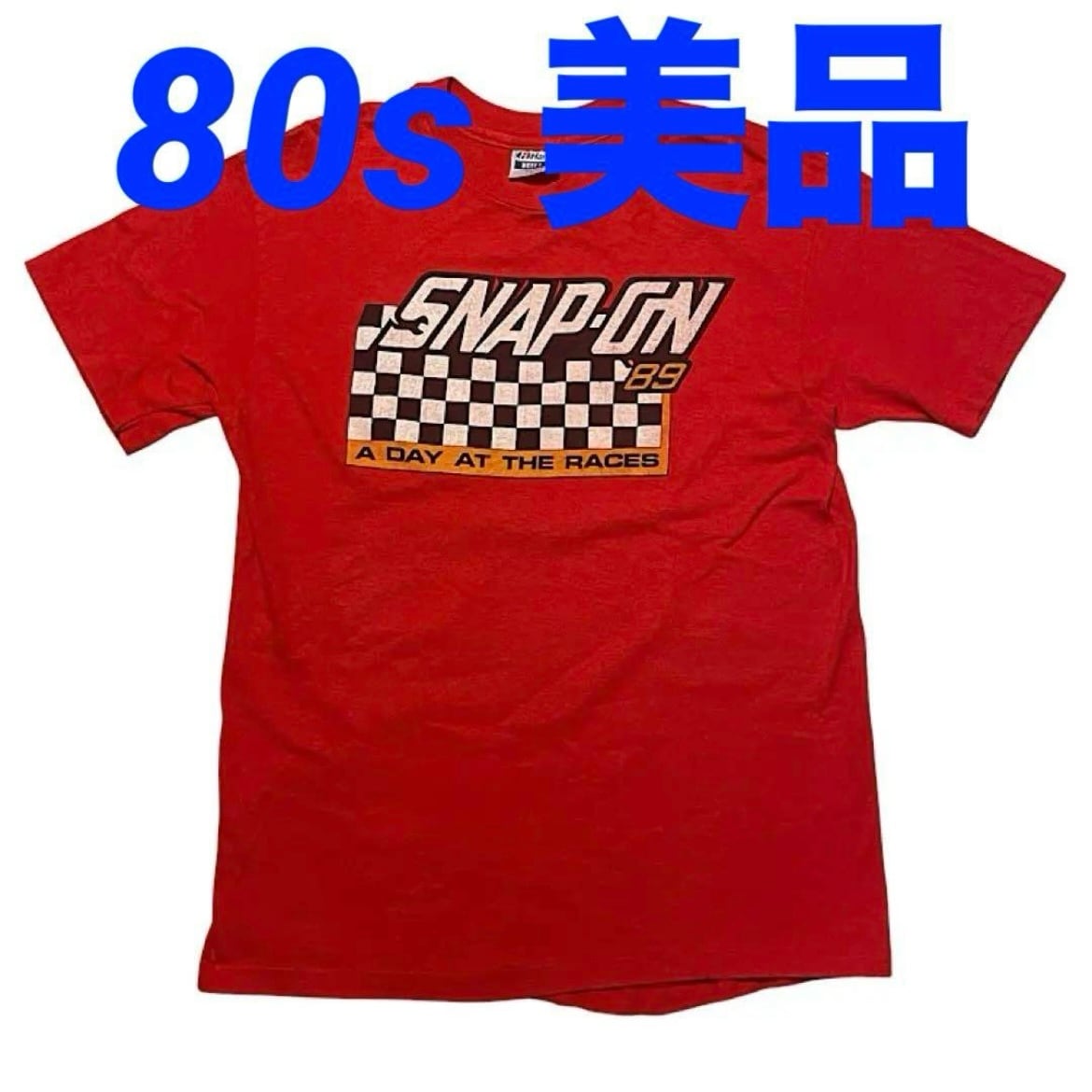 激レア美品 80s Hanes BEEFY-T SNAP-ON スナップオンレーシング ビンテージ Tシャツ モーター系 両面プリント USA製 1989 チェッカーフラッグ 肉厚ヘビーコットン(赤,Lサイズ)袖裾シングルステッチ
