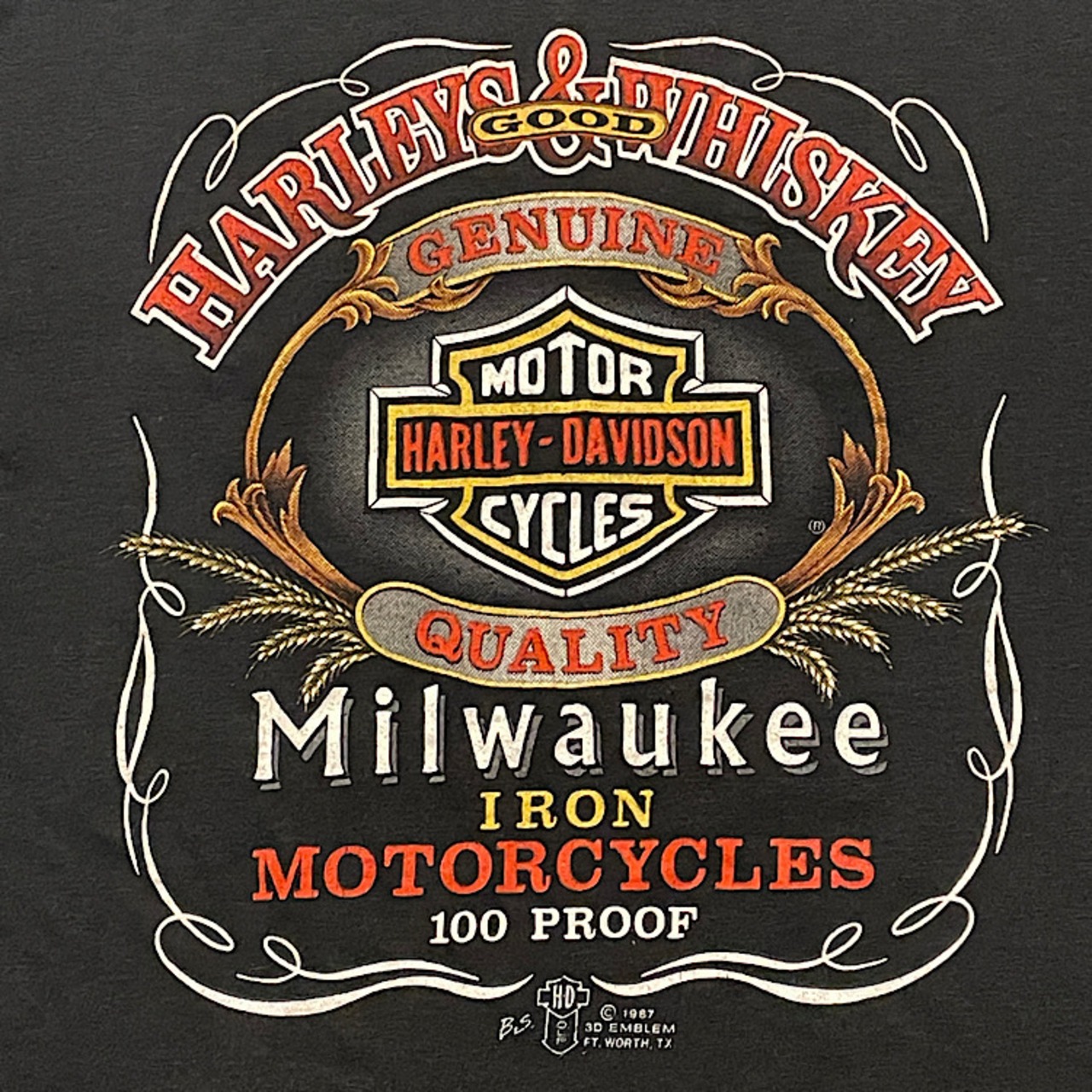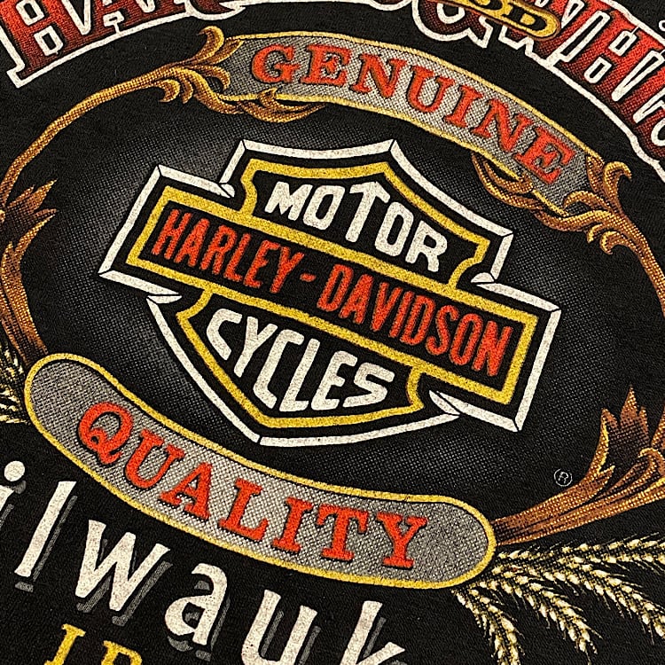 超激レア当時物新品デッドストック 80s 3D EMBLEM ハーレーダビッドソン ビンテージ Tシャツ 両面プリント 1987&1989 DEAD STOCK(黒,Mサイズ)