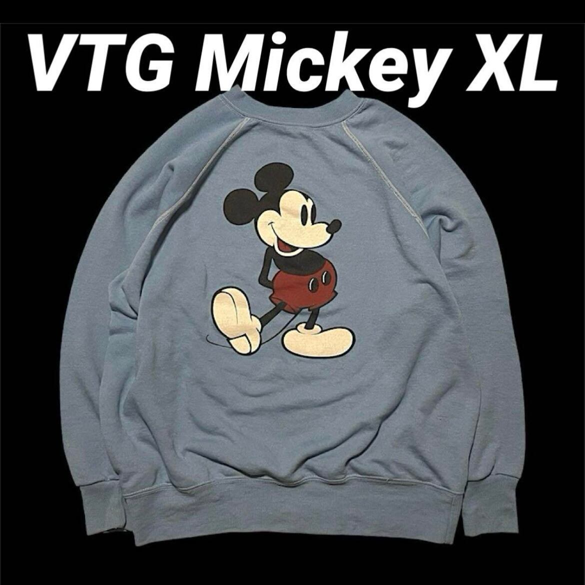 70s 80s ビンテージ ミッキーマウス スウェット USA製 在原みゆ紀着用 オールドディズニー Disney CASUALS Mickey Mouse ラグランスリーブ(水色 サックスブルー,XLサイズ)