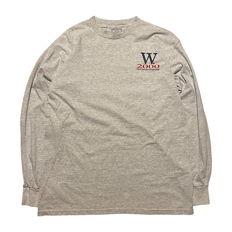 激レア 00s ALL Sport ジョージブッシュ ブッシュ大統領 ビンテージ ロンT Tシャツ USA製 George W. Bush 2000年大統領選挙キャンペーンデザイン(霜降り杢グレー,Lサイズ)