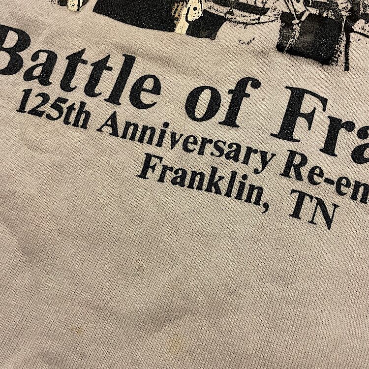 80s Hanes ビンテージ スウェット フランクリンの戦い 南北戦争 USA製 Battle of Franklin 1989年 裏起毛 ラグランスリーブ(グレー ネズミ色,XLサイズ)
