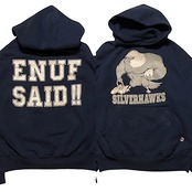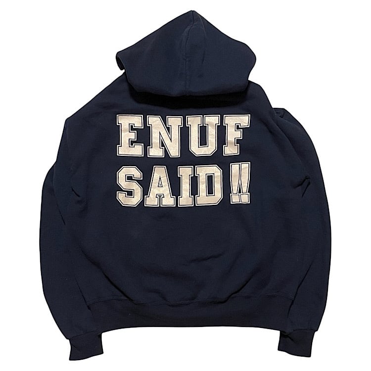 スペシャル 90s ラッセル ビンテージ パーカー SILVER HAWKS 両面プリントUSA製 ENUF SAID!! 肉厚ヘビーウェイト(ダークネイビー,Lサイズ)