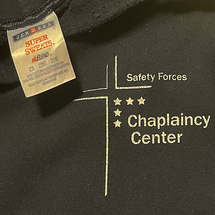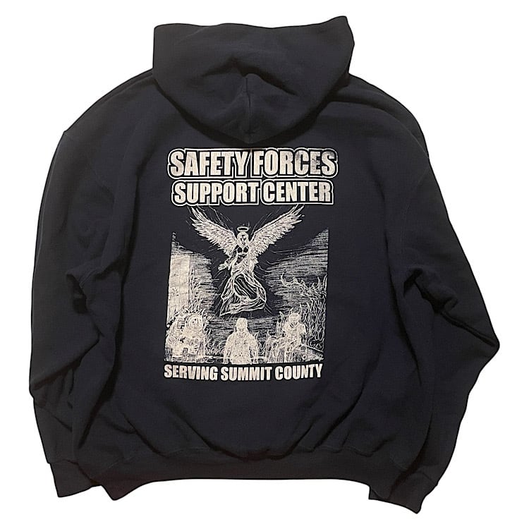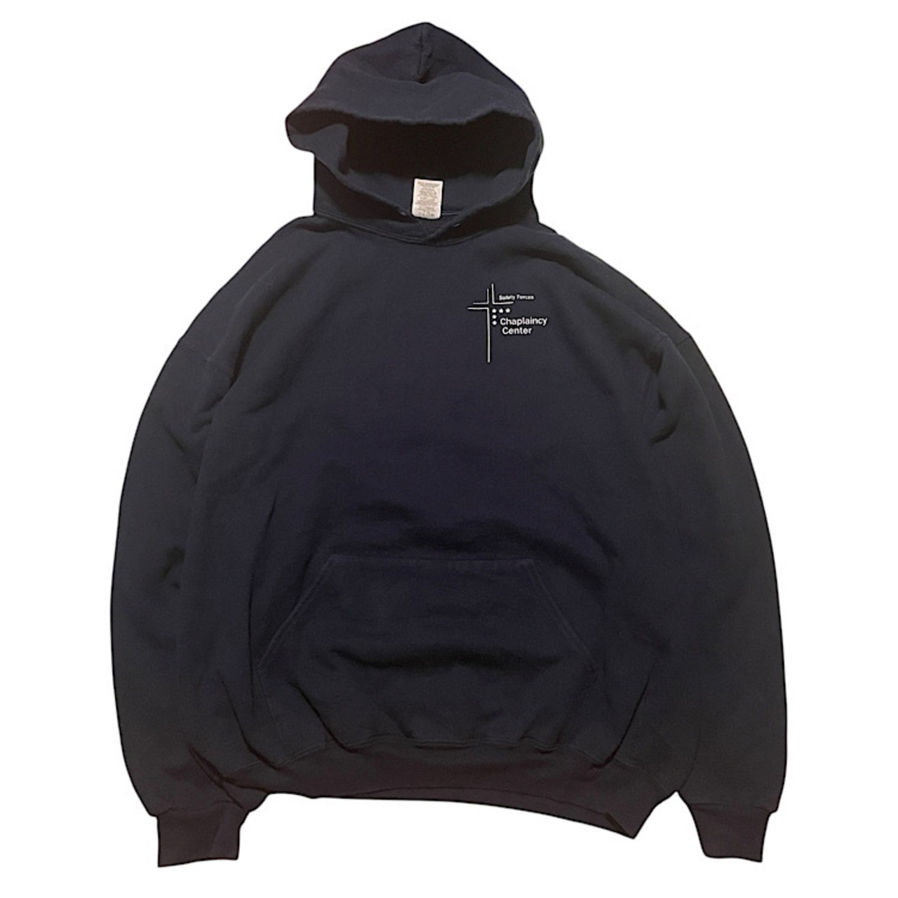 90s 00s キリスト 天使 ビンテージ パーカー 両面プリントJERZEES SUPER SWEATS SAFETY FOCES SUPPORT CENTER SFSC安全部隊支援センター(ダークネイビー,2XLサイズ)