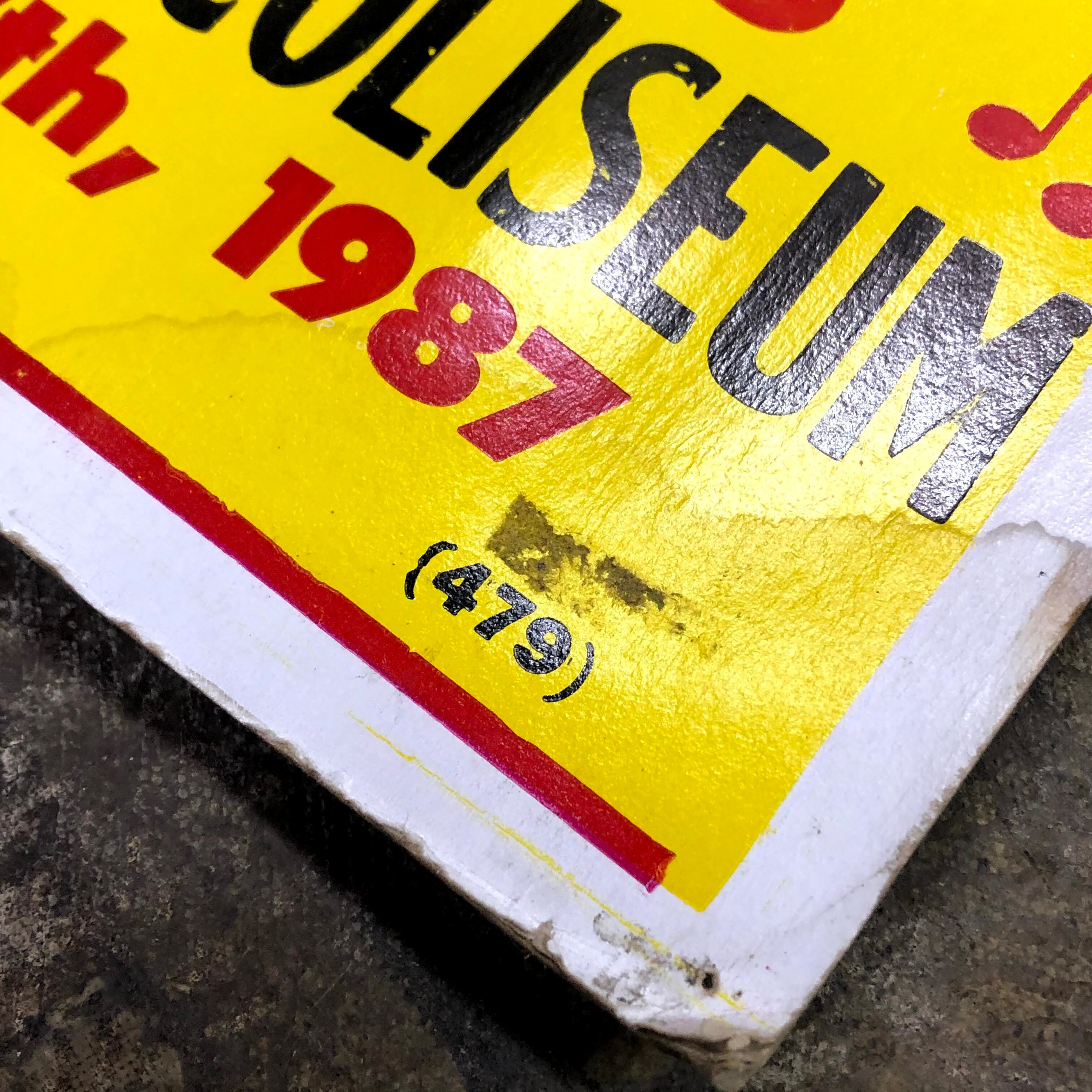 当時のライブの告知は厚紙のこのポスターの角に穴をあけ針金でフェンスなどに括り付けていました。昔はコレクターなども存在していなかったので、ライブが終われば捨てられていたようです。そのため現在でも残るものは少なく、とても貴重となります。