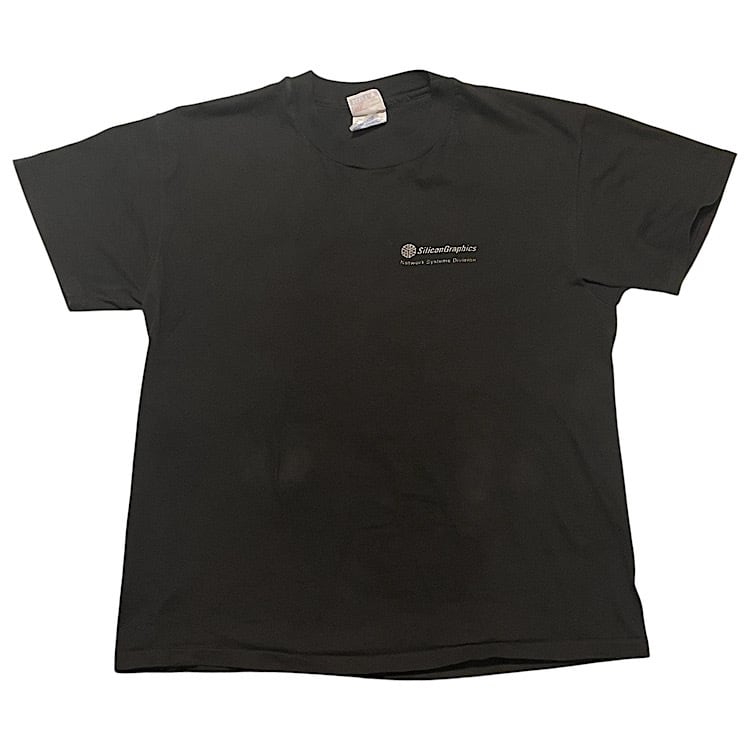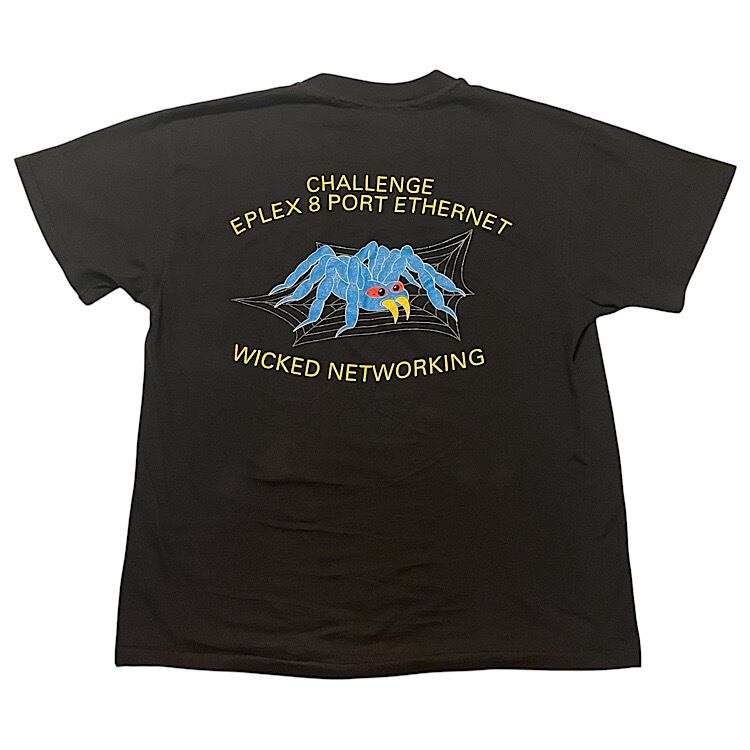 90s Hanes BEEFY-T ビンテージ Tシャツ 両面プリント 蜘蛛の巣 スパイダーウェブデザイン インターネット ネットワークシステム USA製(黒,Lサイズ)袖裾シングルステッチ
