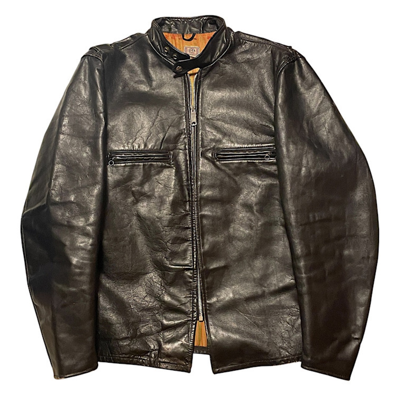 CONDITION:USED。レザー表面のクラックやレザー表面のスレなどのダメージがあります。ジッパーも歯飛びないコンディション。