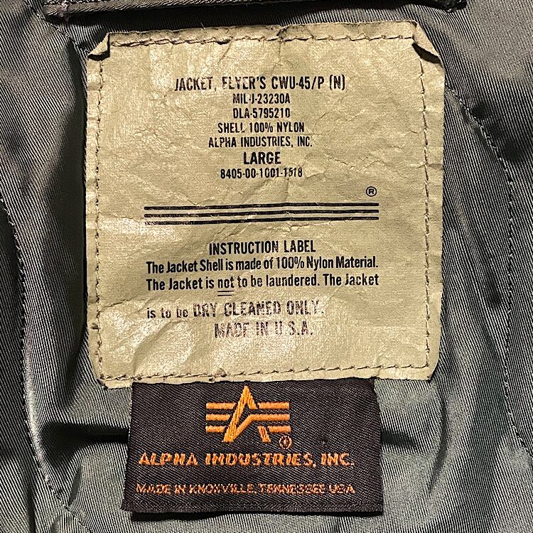 美品 ALPHA CWU-45P MA-1 ビンテージ フライトジャケット アルファ社 USA製 短丈 ミリタリー (Lサイズ)