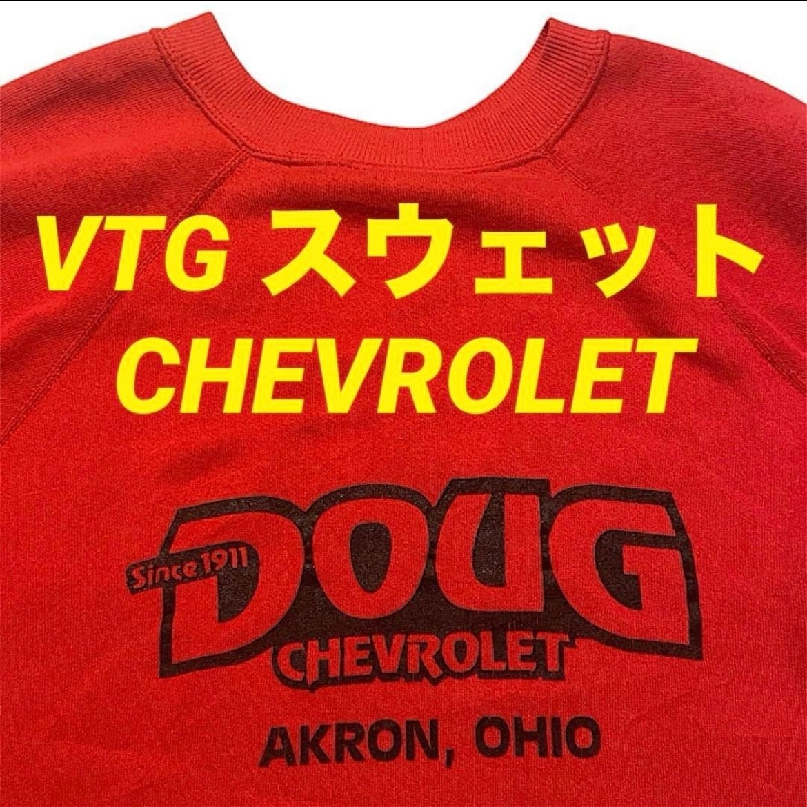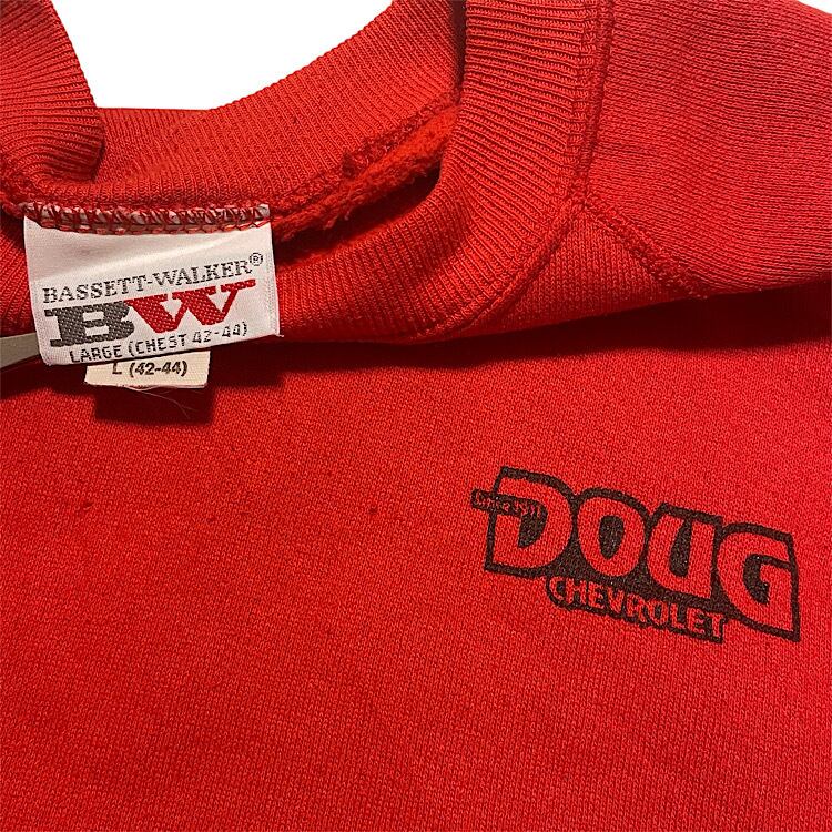 80s 90s シボレー ビンテージ スウェット モーター系 両面プリント ラグランスリーブ USA製 BASSETT WALKER DOUG CHEVROLET AKRON,OHIO 1911(赤,Lサイズ)