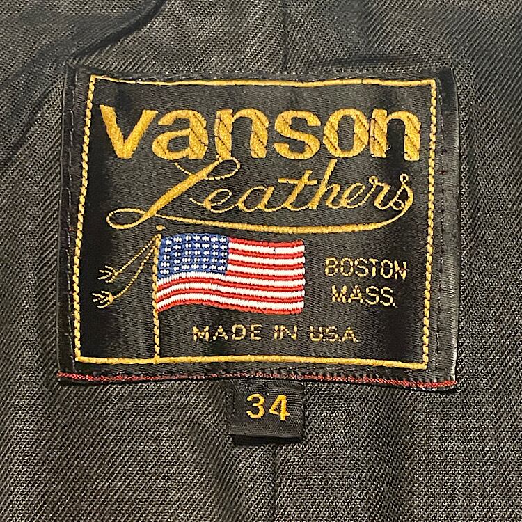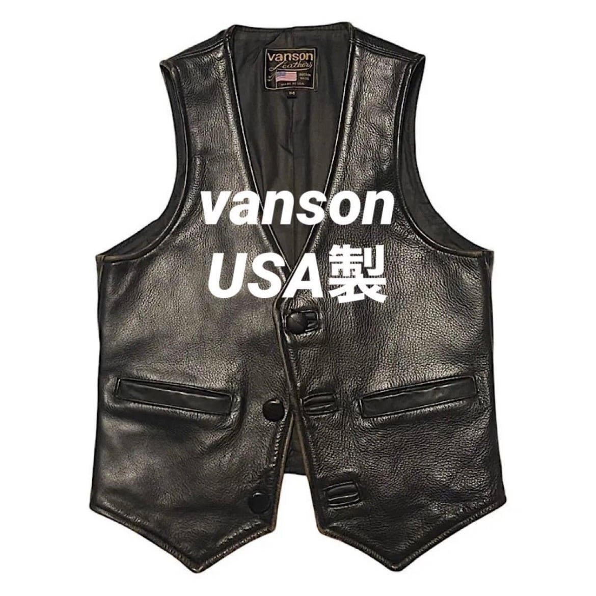 vansonレザーベスト USA製 バイカー ハーレーダビッドソン 本革肉厚(黒,34inch Sサイズ)