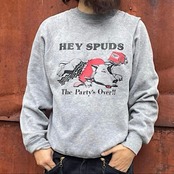 極美品 80s ビンテージ スウェット バド犬 BUD LIGHT バドワイザー バドライト スパッズマッケンジー Miller BEER HEY SPUDS! The Party's Over ミラービール キャラクタープリント USA製(杢グレー,XLサイズ)