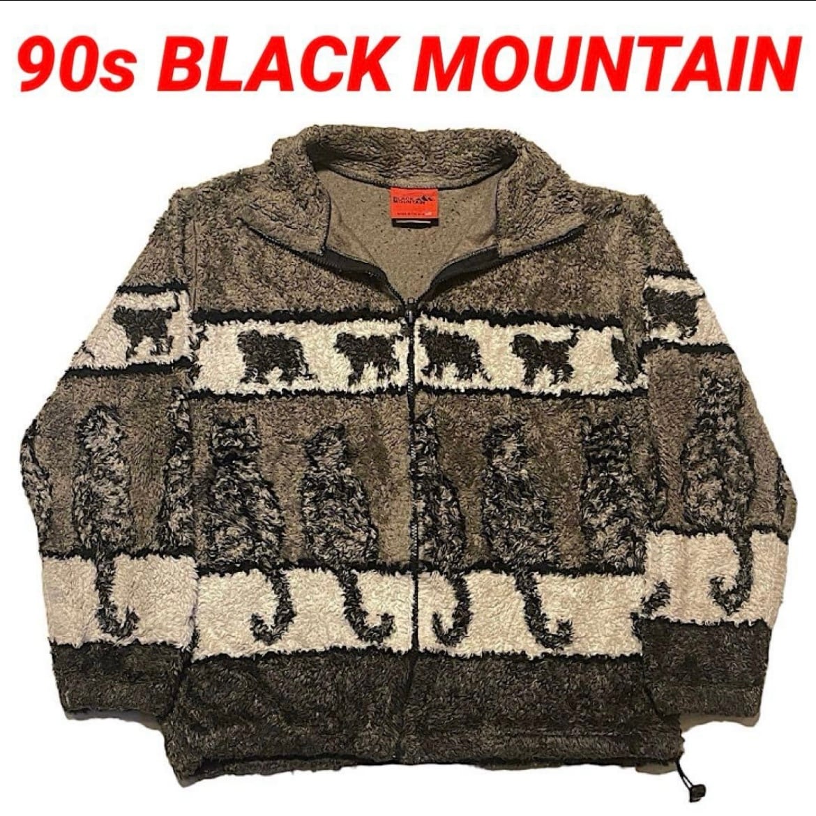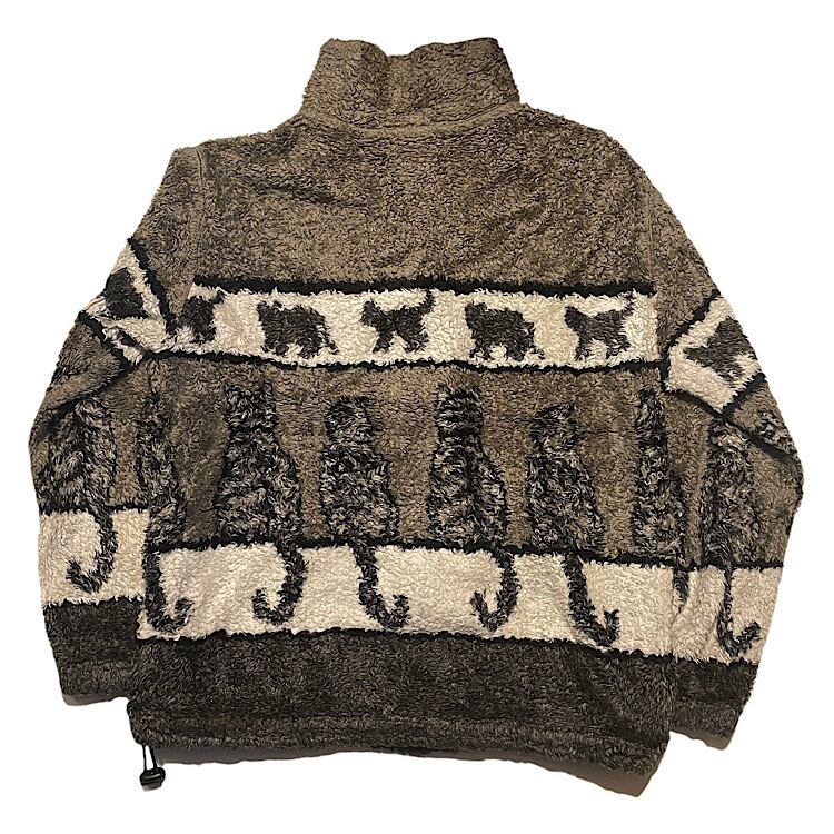 90s BLACK MOUNTAIN ネコ アニマル刺繍 フリース 毛足の長いパイルニットジャケット USA製(Mサイズ)