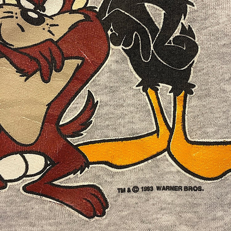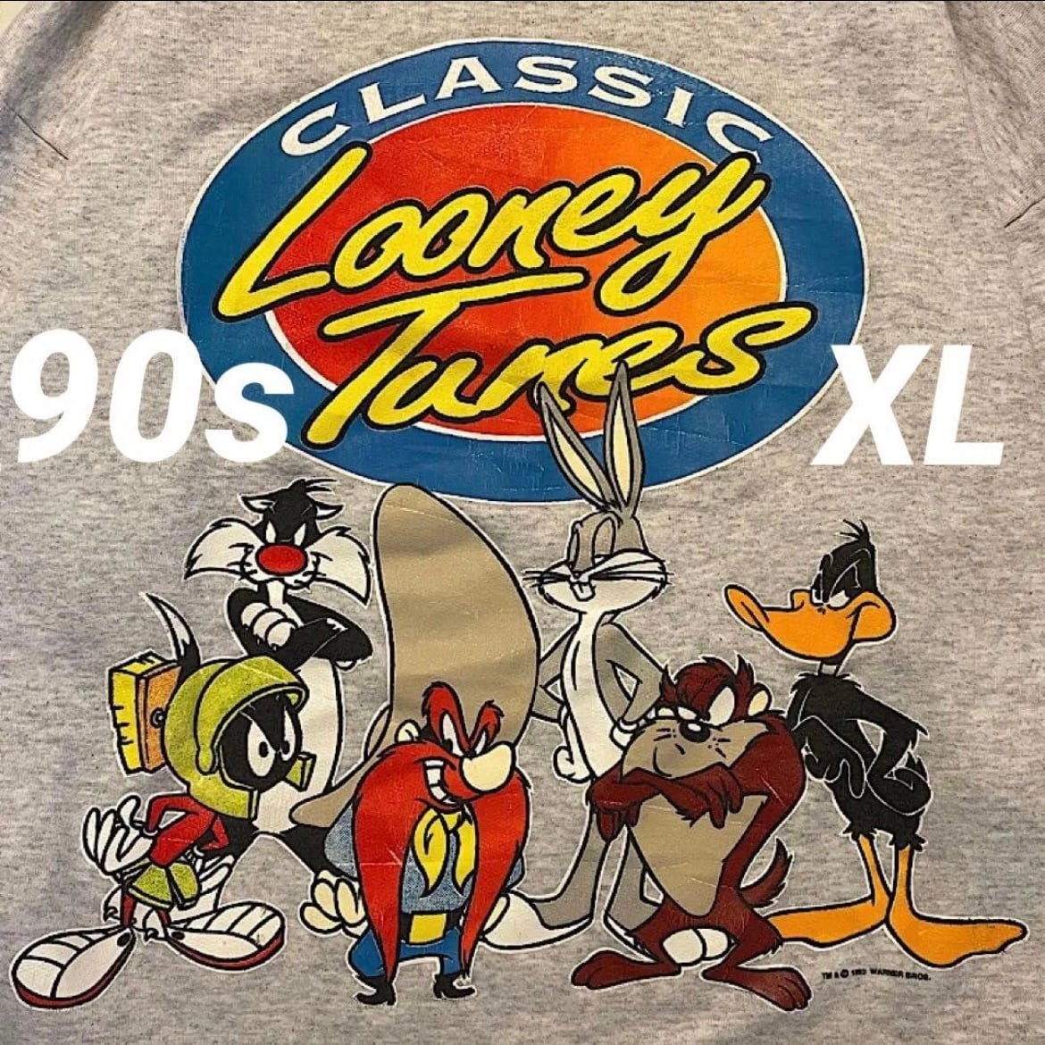 激レアスペシャル 90s ルーニーテューンズ ビンテージ スウェット キャラクター LOONEY TUNES 1993 WARNER BROS. SUN USA製(霜降り杢グレー,XLサイズ)
