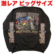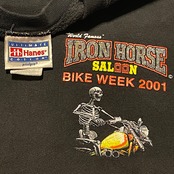 激レア 00s ハーレーダビッドソン ビンテージ スウェット スカルプリント ヘビーコットン Hanes IRON HORSE SALOON BIKE WEEK 2001 袖プリあり(黒,XXLサイズ程度)