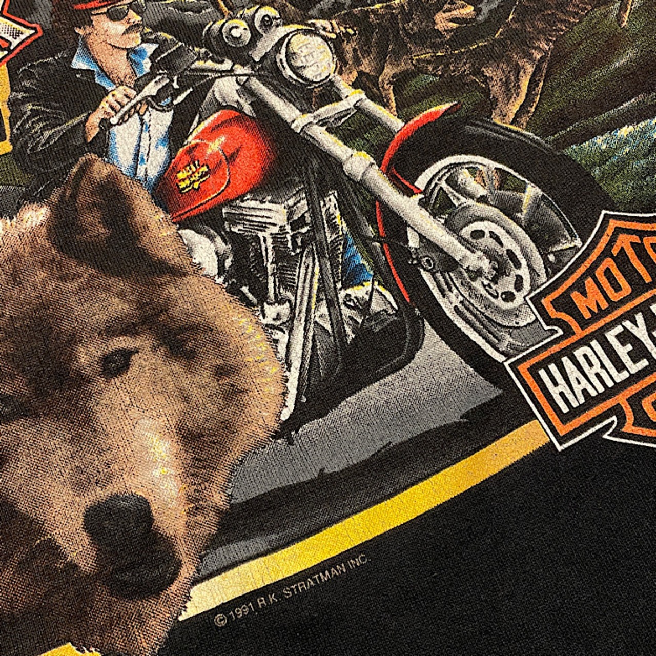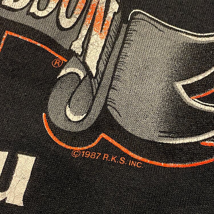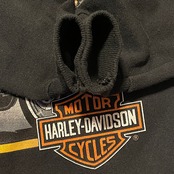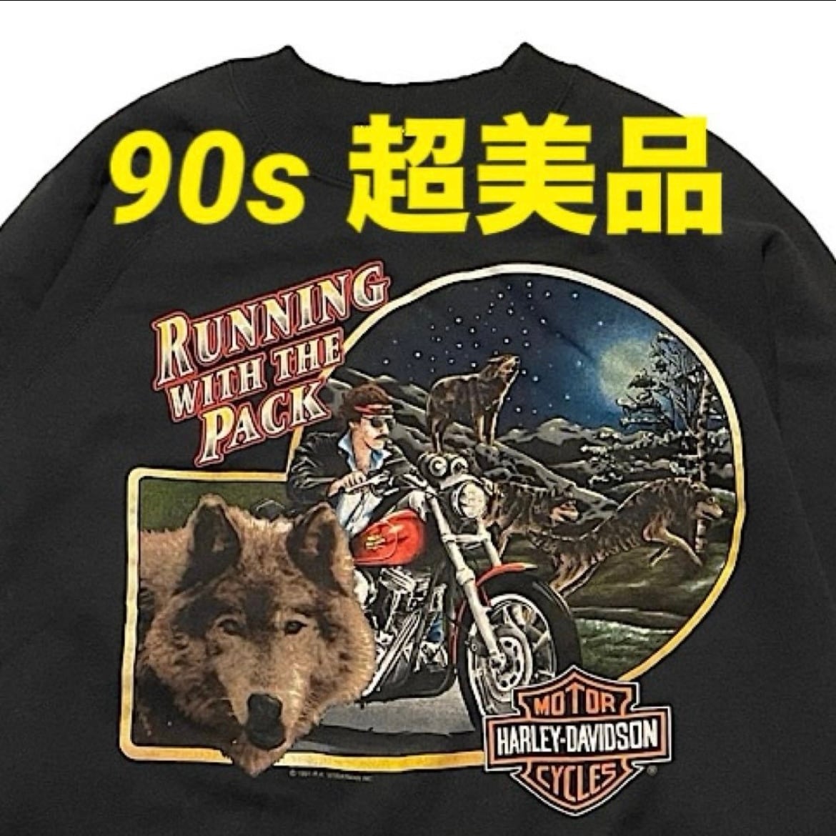 超絶美品 肉厚ミントコンディション 90s Hanes ハーレーダビッドソン ビンテージ スウェット 両面プリント USA製 フロント©️1991 バック©️1987 ラグランスリーブ(黒,Mサイズ)
