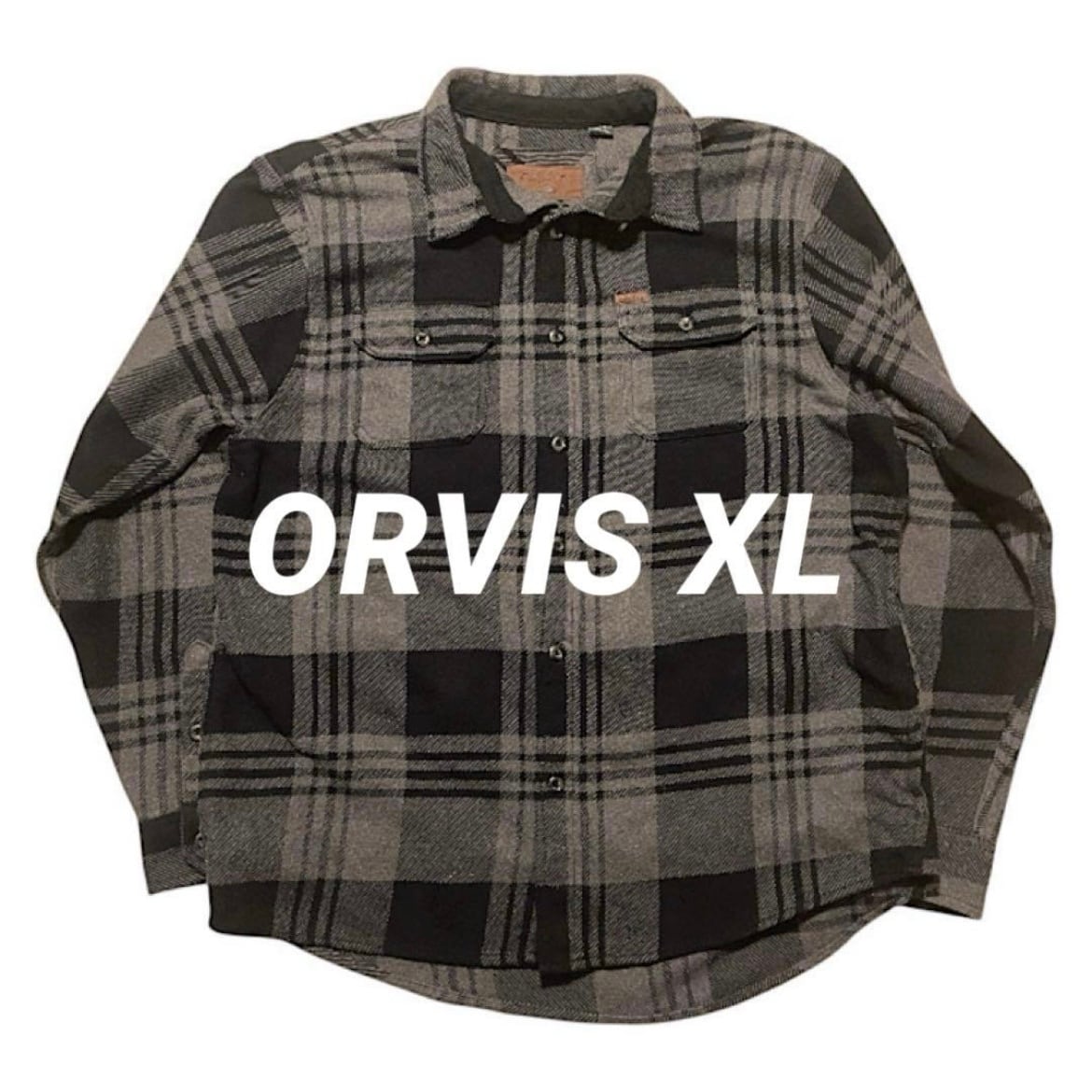 オービス ORVIS ビンテージ ヘビーネルシャツ白黒チェック サイドポケット(グレー×黒,XLサイズ)