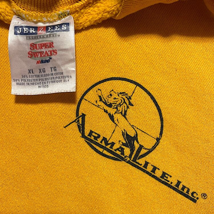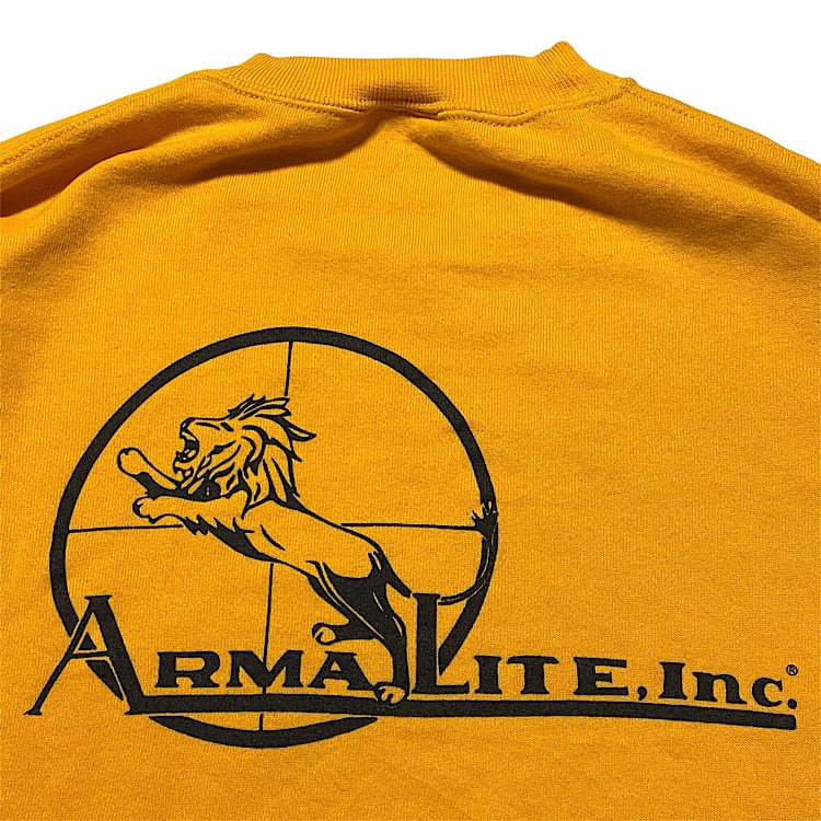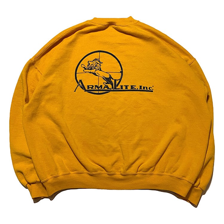 激レア 00s ARMA LITE,Inc. アメリカの銃器メーカー アーマライト ビンテージ スウェット 両面プリント サバゲー ライフル ジェームズボンド ゴルゴ13 クレー射撃 JERZEES NBBD ヘビーコットン(イエロー カラシ,XLサイズ)