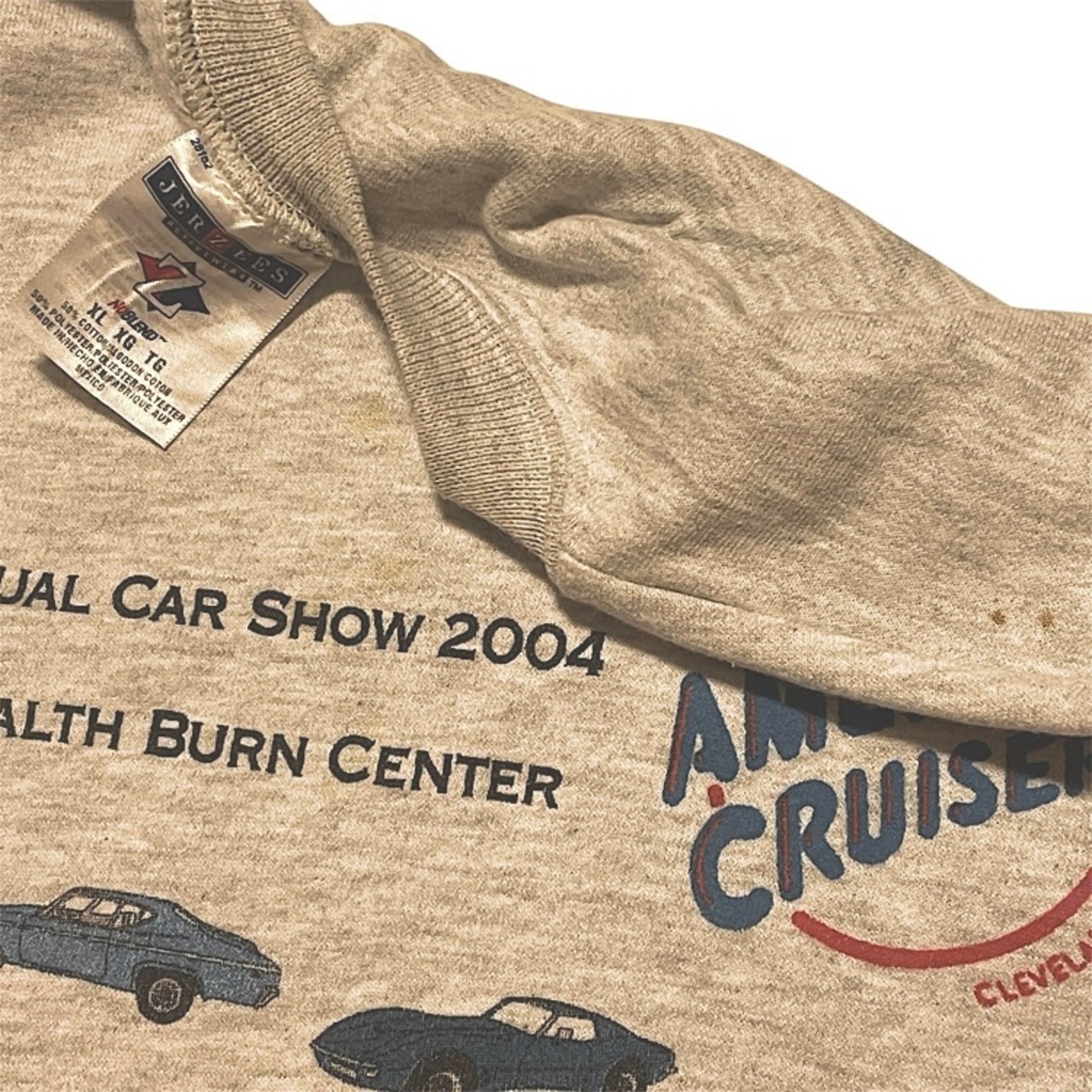 00s ゼネラルモータース ビンテージ スウェット モーター系 GM AMERICAN CRUISERS CLEVELAND, OH. 12th Annual Car Show 2004 JERZEES 2004 裏起毛(霜降り杢グレー,XLサイズ)