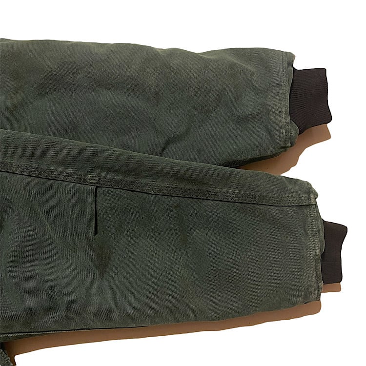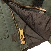 CONDITION:USED。左袖にオイル汚れっぽいものがありますが、濃い色なので目立ちません。ダメージの入りやすい袖先リブやポケット口にもダメージのない希少な一枚。着用に際して致命的なダメージはありません。写真にてご確認ください。