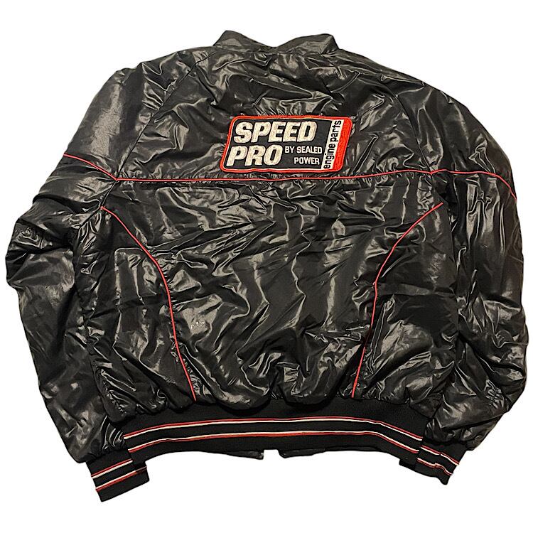 70s swingster SPEED PRO engine parts × NATIONAL HOT ROD ビンテージ 中綿入り レーシングジャケット(黒,XLサイズ)