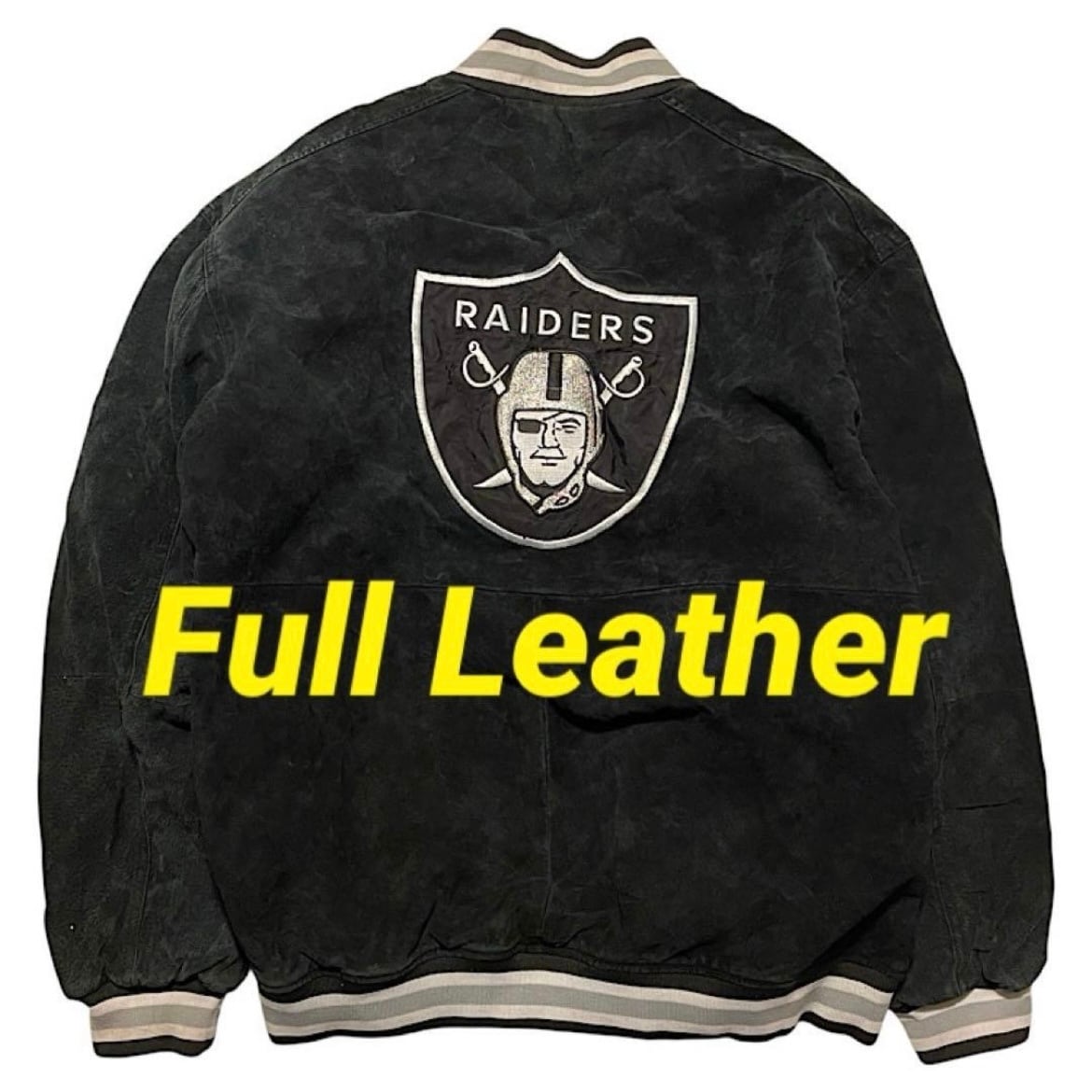 激レア NFL RAIDERS レイダース オールレザースタジャン ビンテージ レザージャケット(黒,Lサイズ表記 XLサイズ程度)