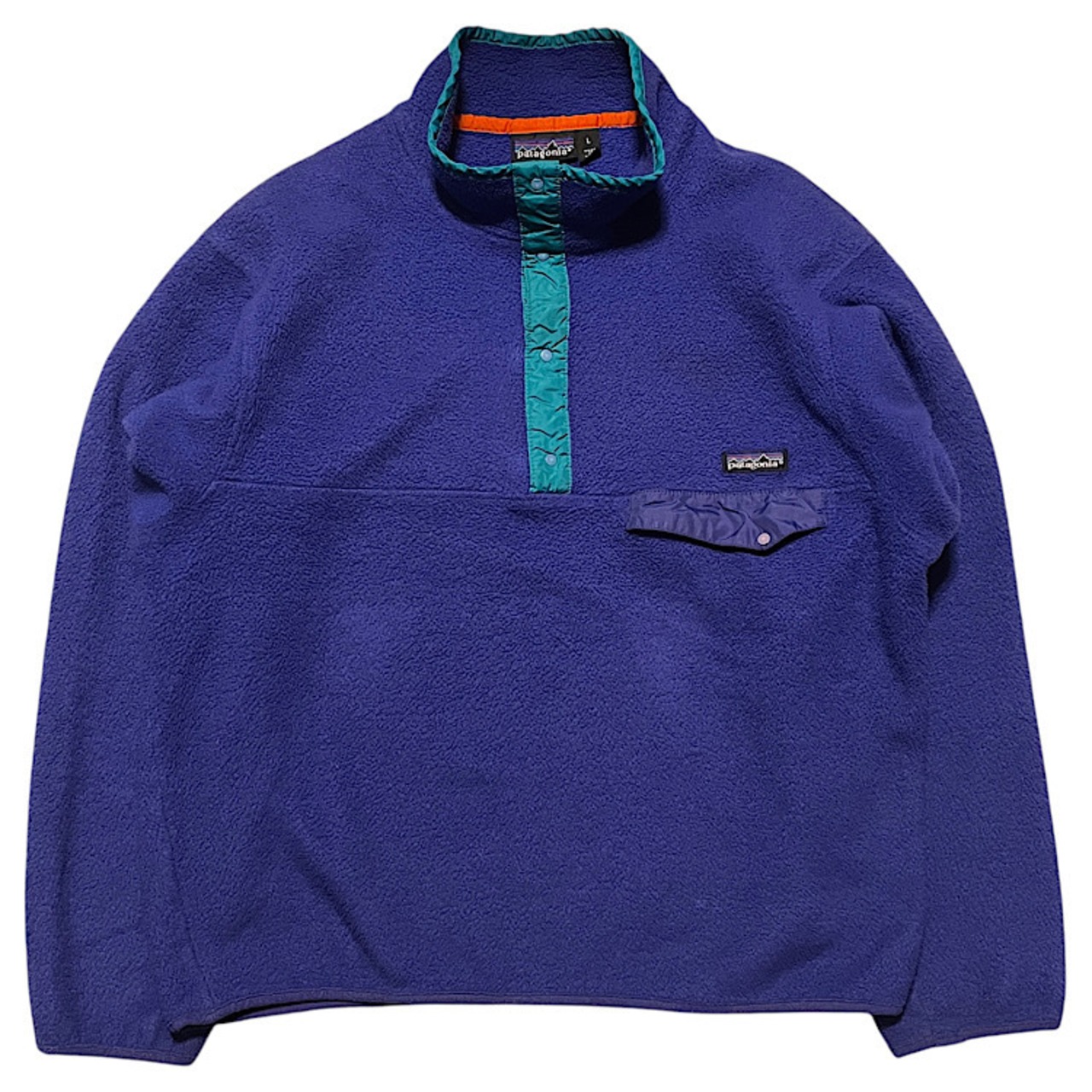 kenta氏着用 希少レアカラー 90s パタゴニア ビンテージ スナップT 前立てナイロン シンチラ プルオーバー USA製 Rマーク 旧タグ(ブルーにエメラルドのパイピング,Lサイズ)