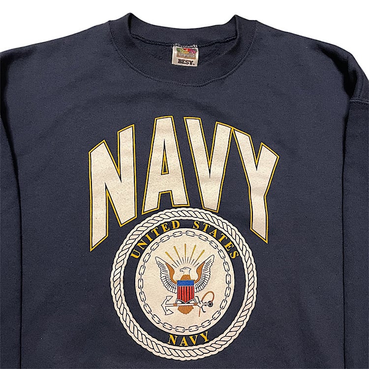 美品 90s ビンテージ スウェット US NAVY ミリタリープリント FRUITS OF THE LOOM BEST(ネイビー,XLサイズ)