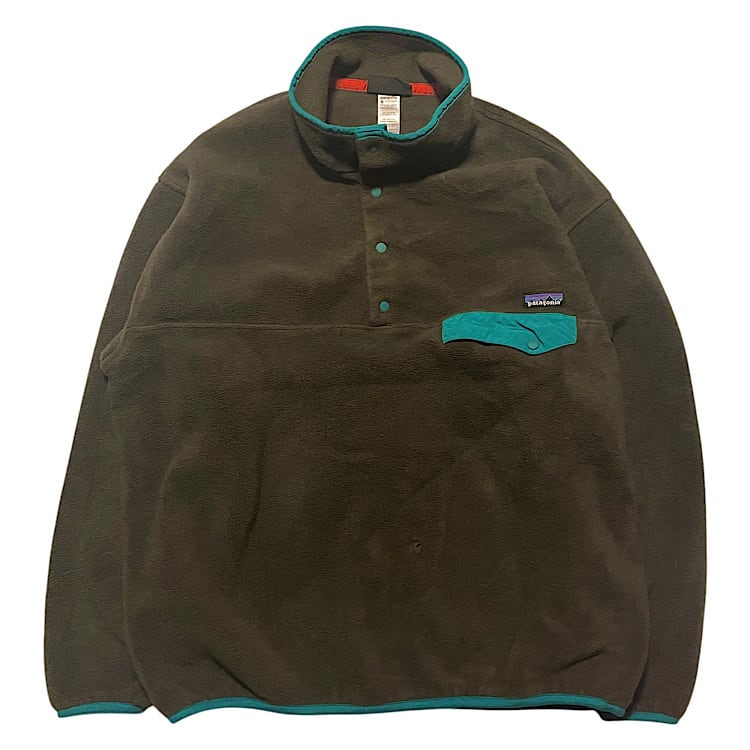 2012年製 パタゴニア ビンテージ スナップT シンチラ プルオーバー(カーキ ダークウォルナット DWA ブラウン×ターコイズ,メンズLサイズ)