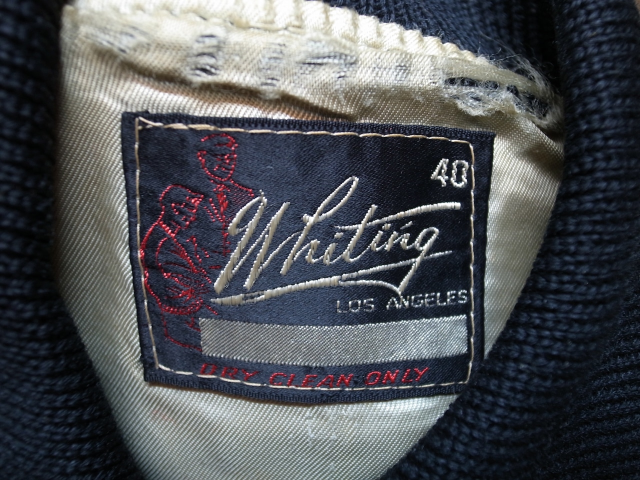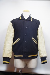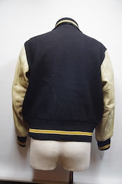 黒のメルトンウール素材に袖がクリームレザーの50年代のホワイティングスタジャン。