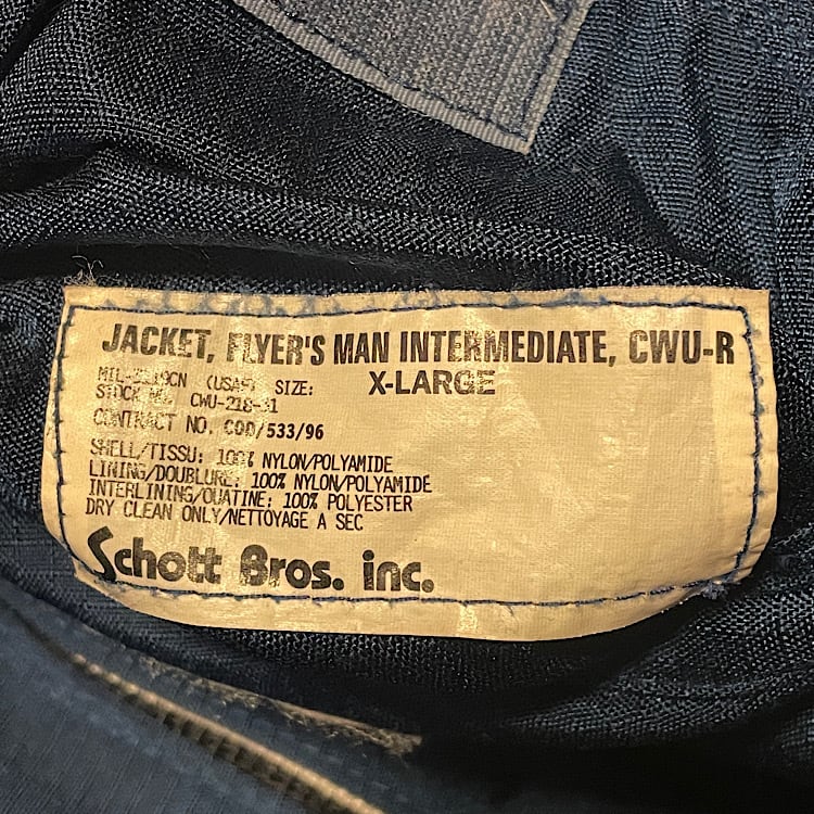 CWUシリーズは米軍のフライトジャケットをルーツに持つデザインで、MA-1の後継モデル。