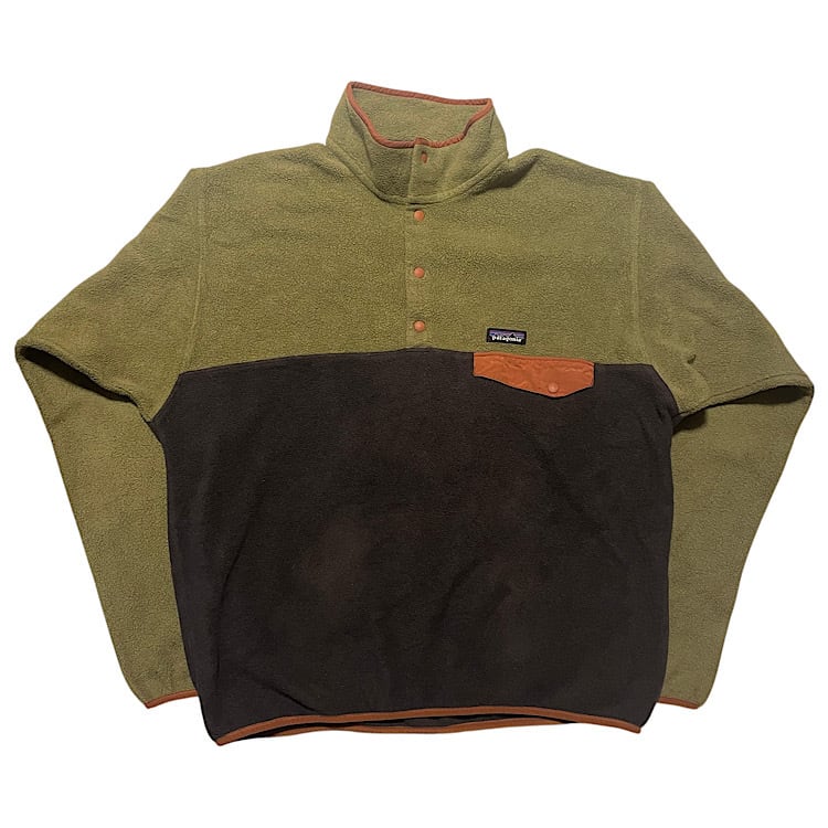 10s パタゴニア ビンテージ スナップT シンチラ プルオーバー 2019年製 ケンダルジェンナー(カーゴグリーン×ブラックチャコールSKA,メンズLサイズ)
