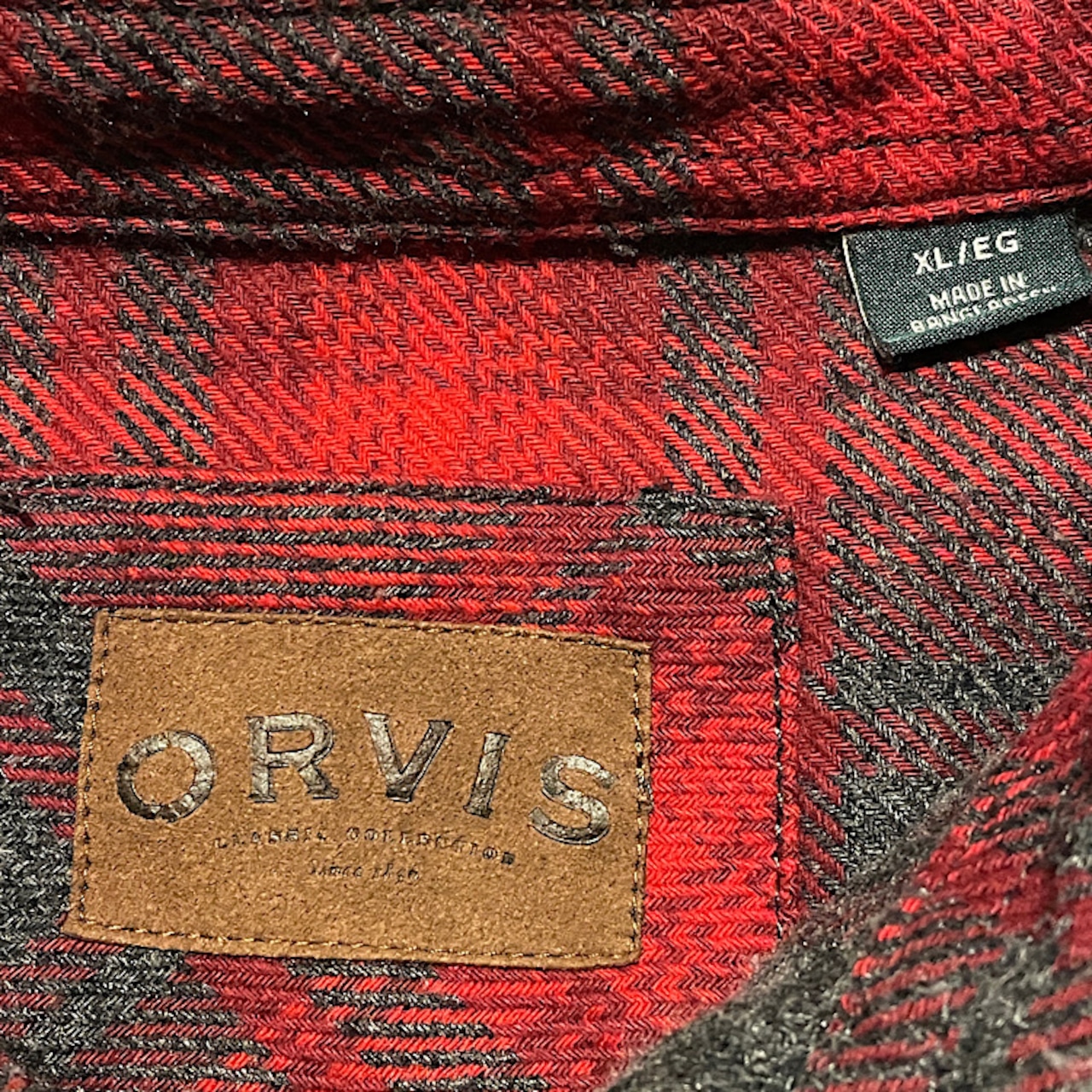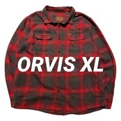 オービス ORVIS ビンテージ ヘビーネルシャツ オンブレチェック サイドポケット(赤黒,XLサイズ)