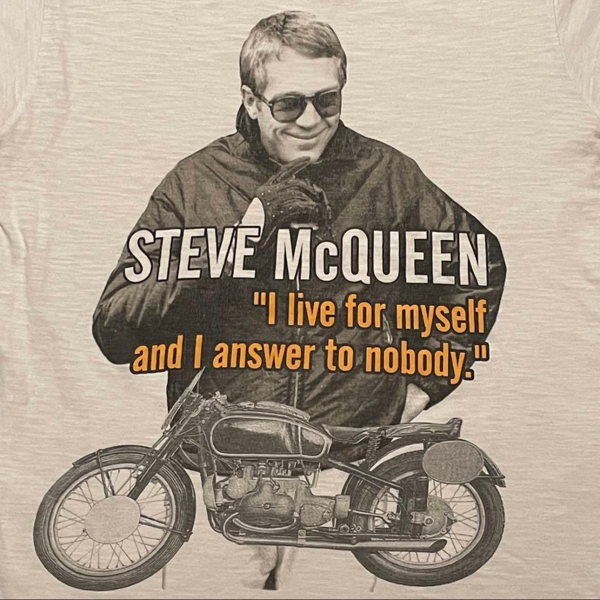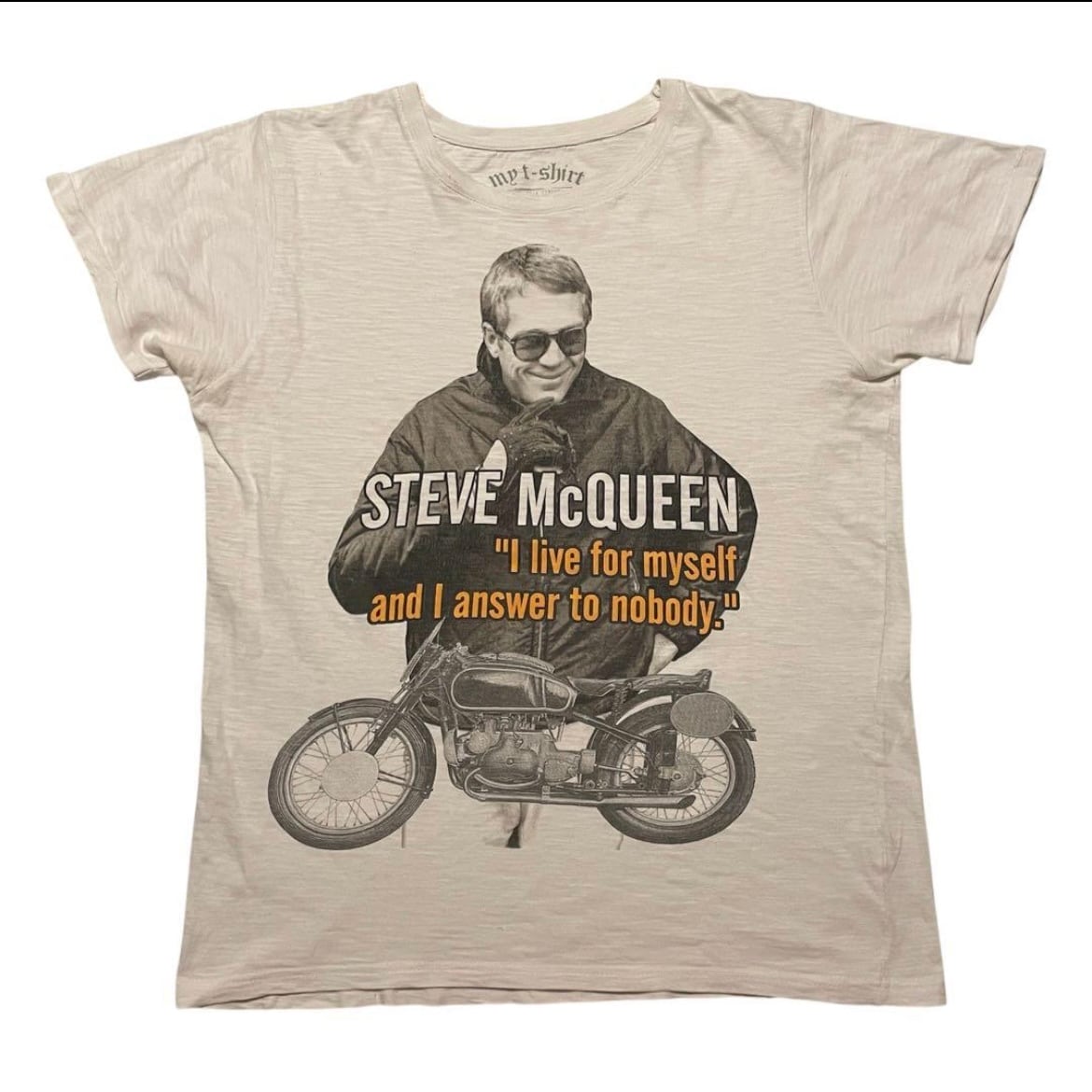 my t-shirt スティーブマックイーン BMW R50 ビンテージ Tシャツ フォトT 大脱走 Steve McQueen(白,Mサイズ程度)裾ダブルステッチ