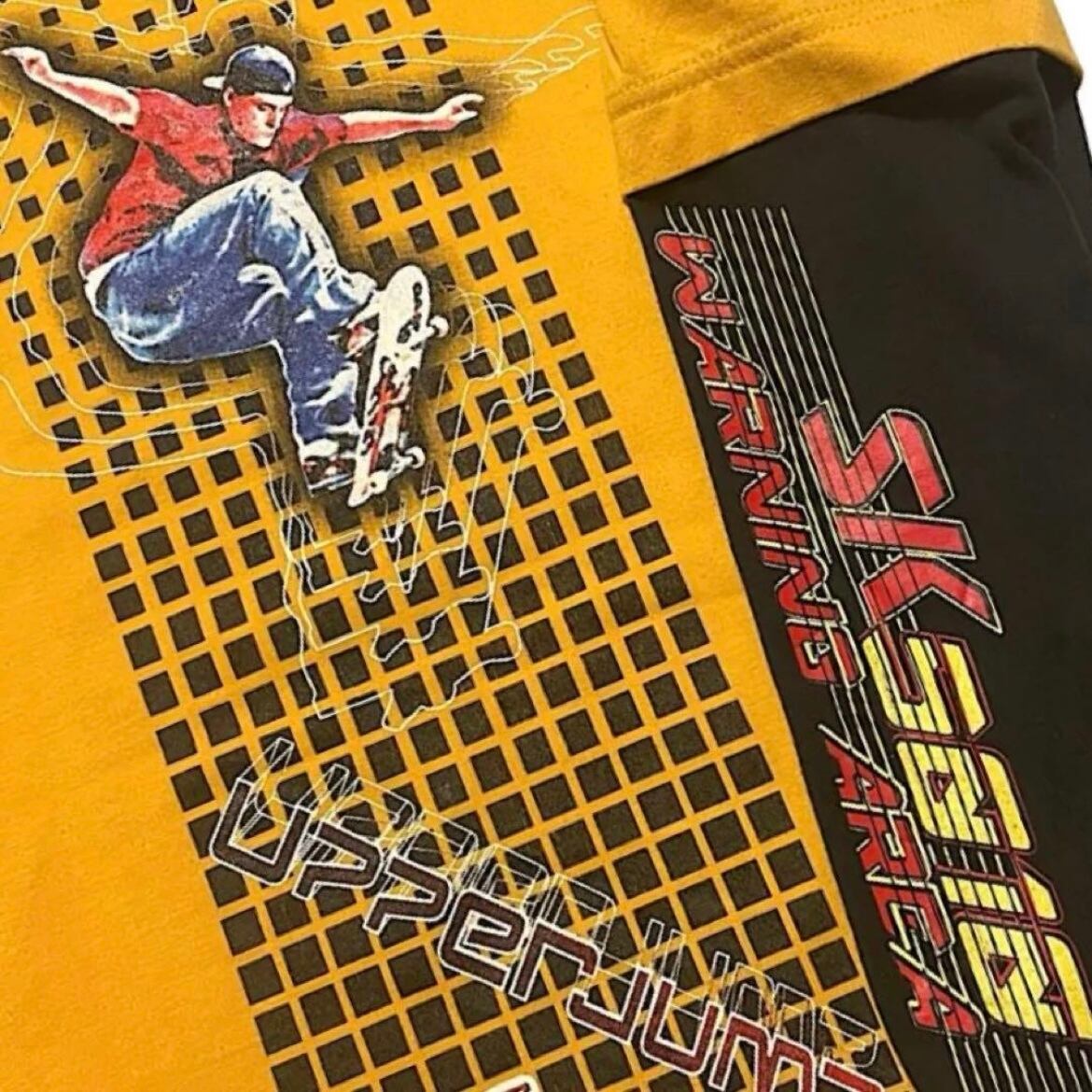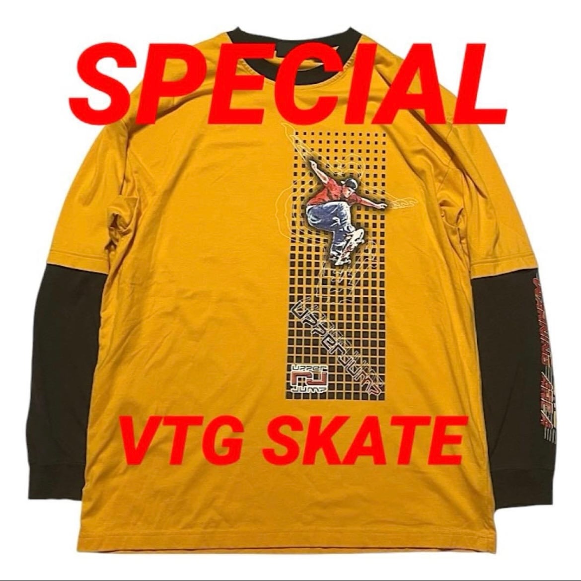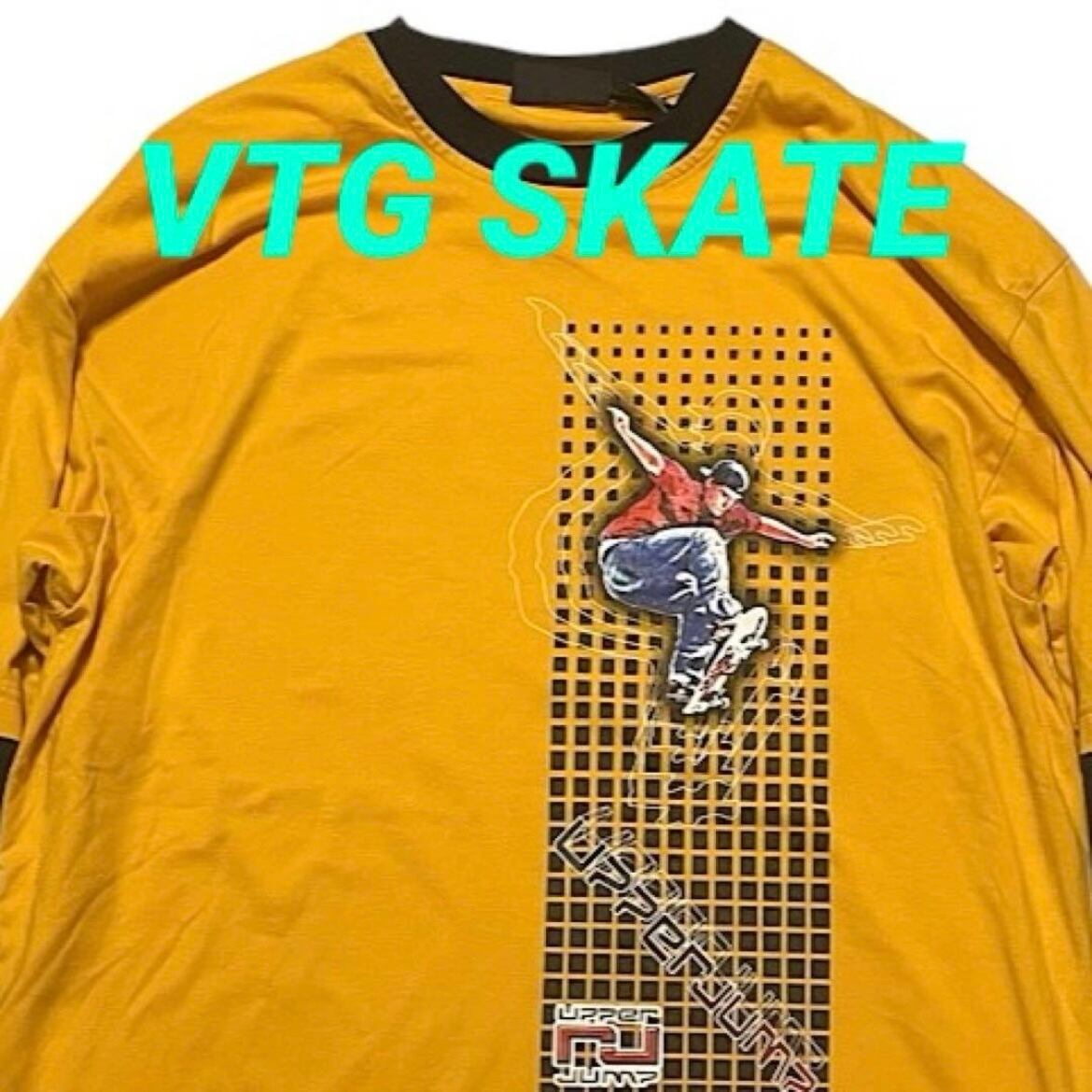 00s スケボー スケート ビンテージ ロンT Tシャツ フリップ 切り替え no boundaries UPPER JUMP(黄色×黒,Lサイズ)