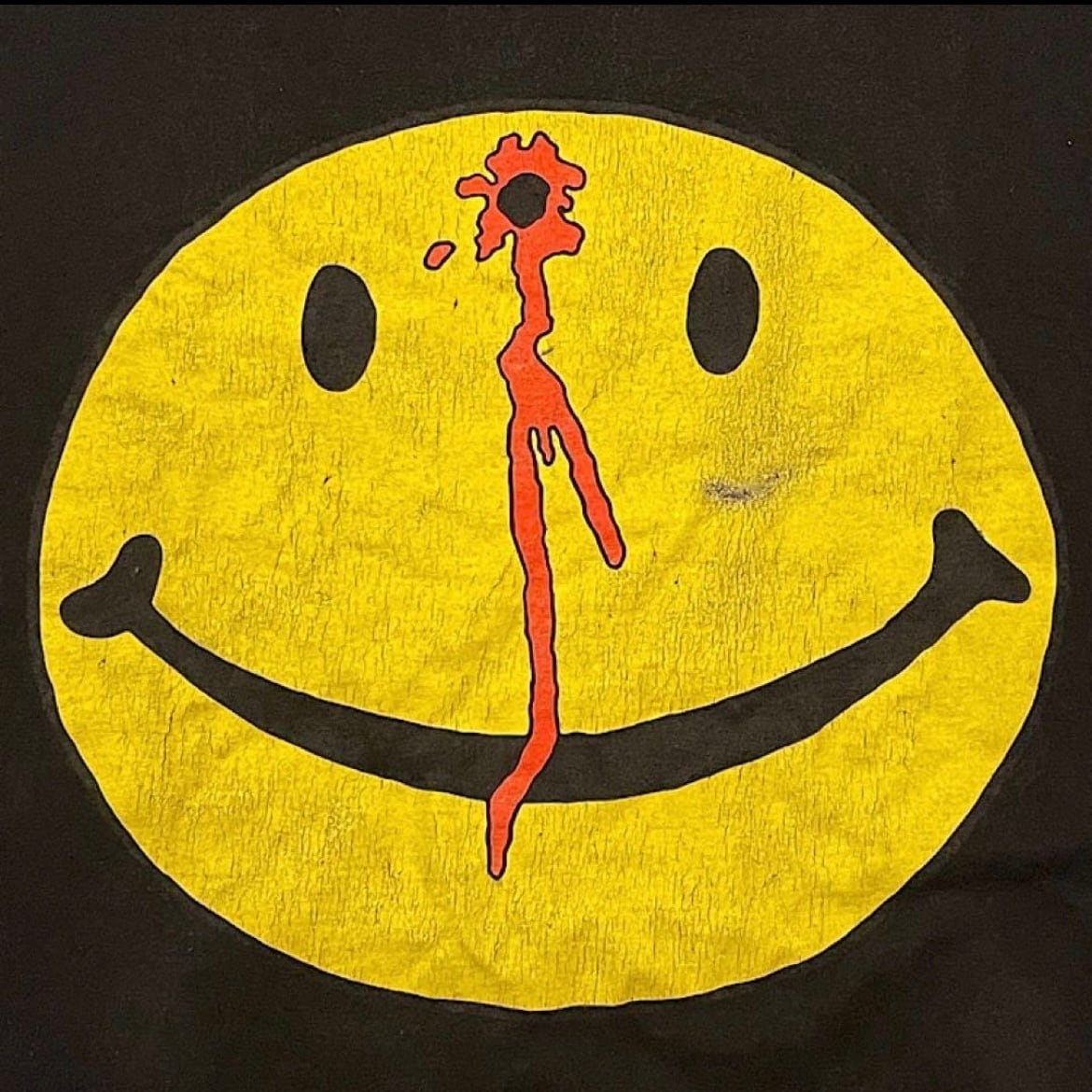 激レア ぶち抜きスマイル ビンテージ Tシャツ USA製(黒,Mサイズ)